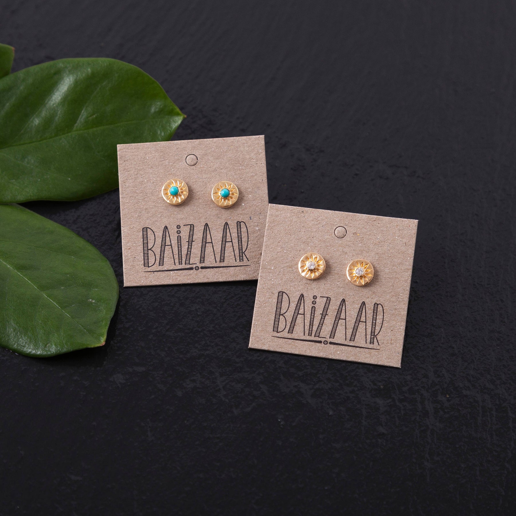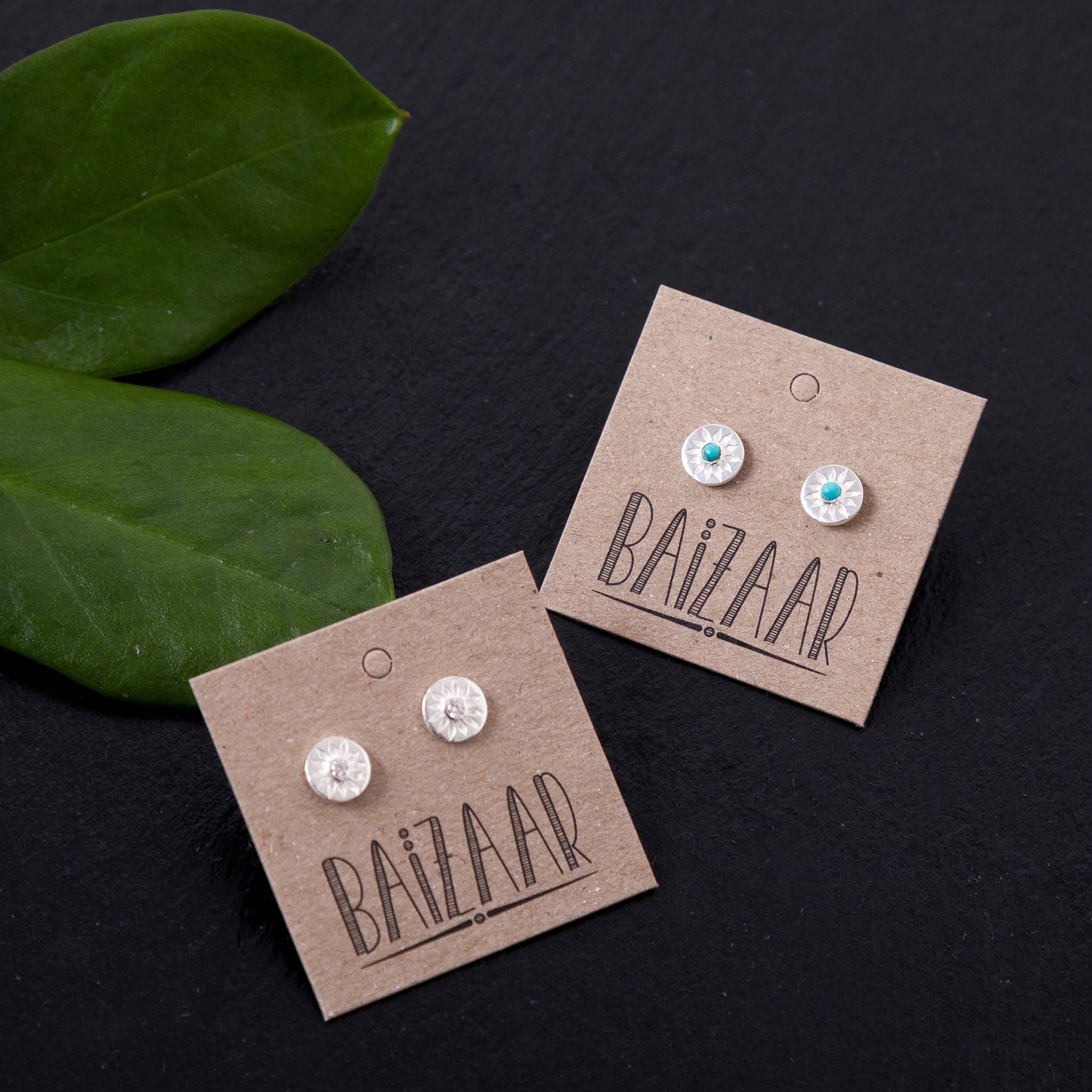 Compass rose stud earrings available in gold plated and sterling silver with Turquoise or Crystal stones.