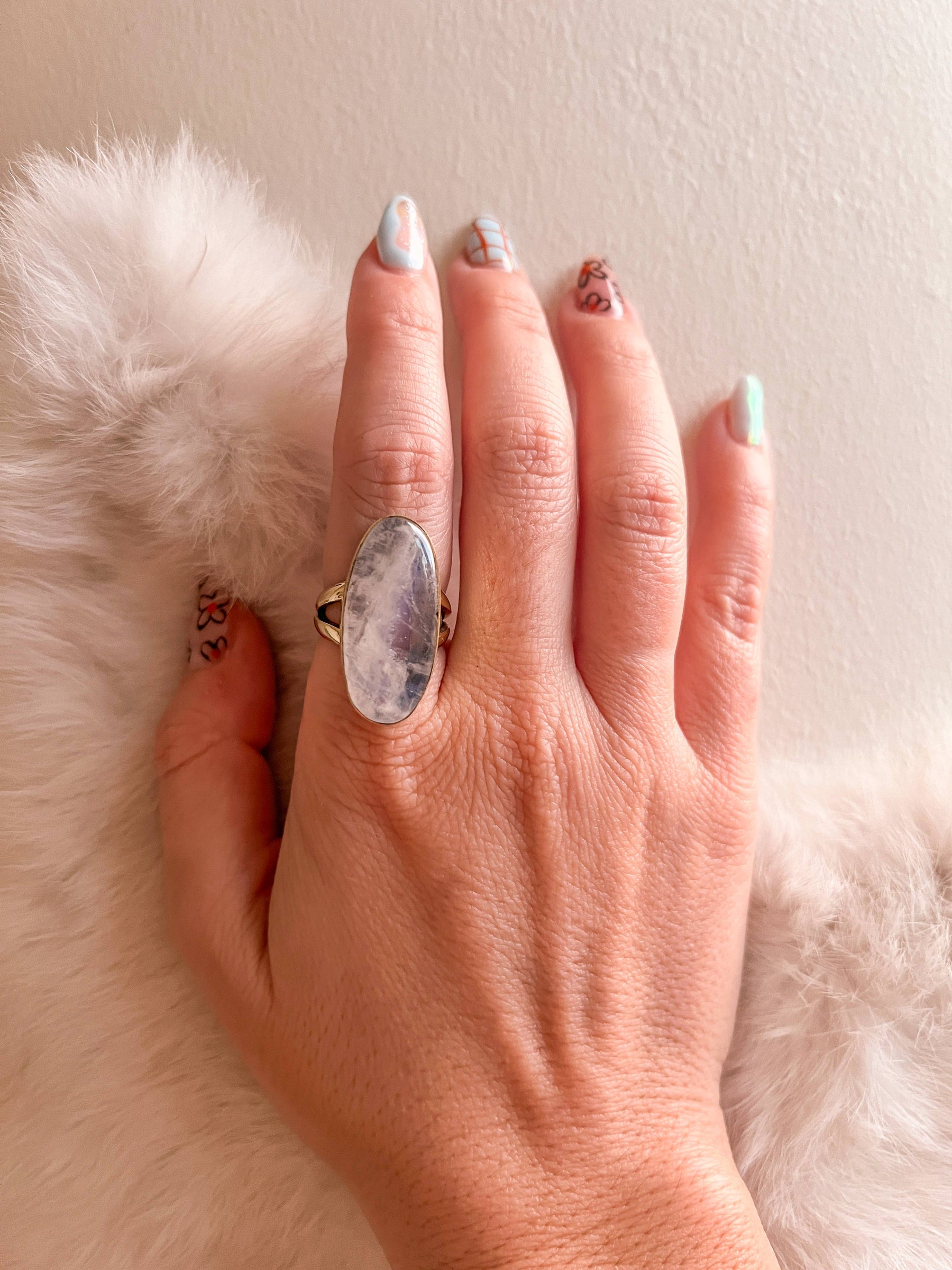 Large brass freeform Stone Ring with Moonstone. Rings with come with different shape stones (oval, teardrop etc.)