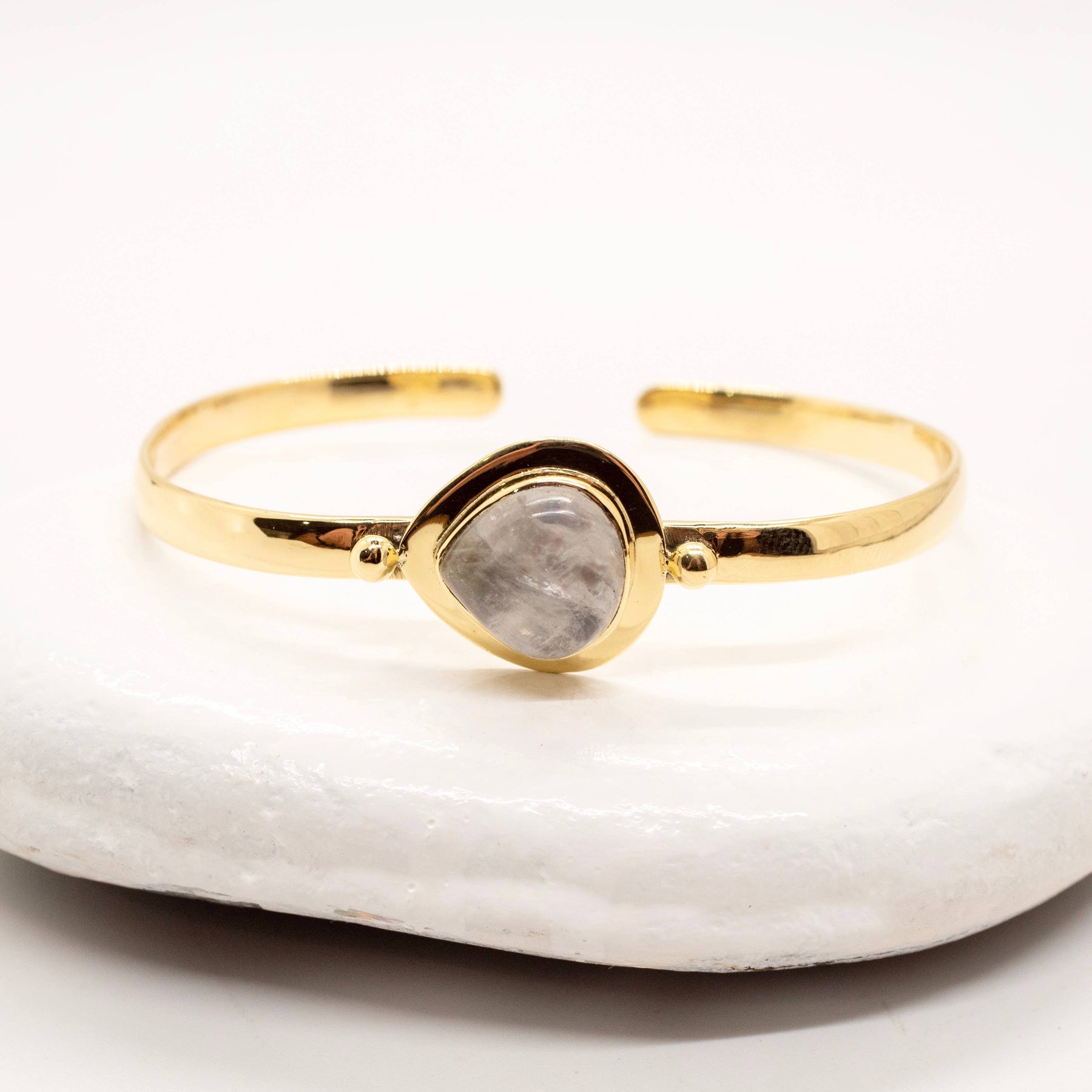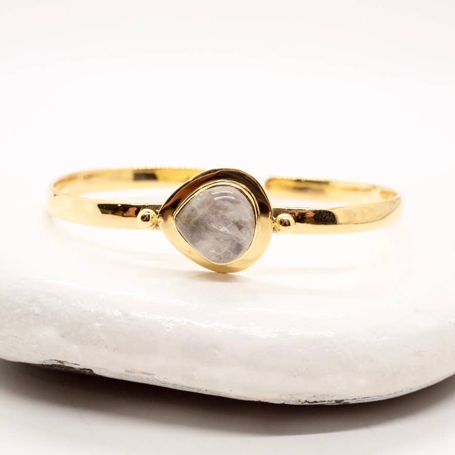 Labradorite and Tourmaline Decorated Cuff Bracelet in Brass