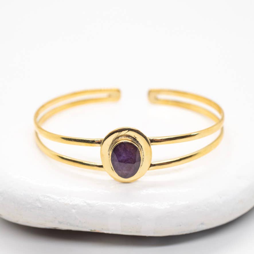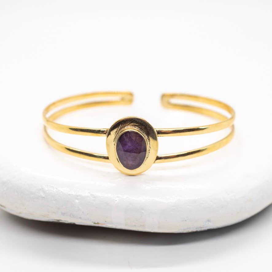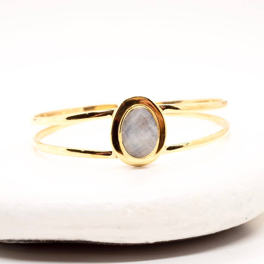 Faceted Double Band Brass Cuff Bracelet. Available in Moonstone & Amethyst.