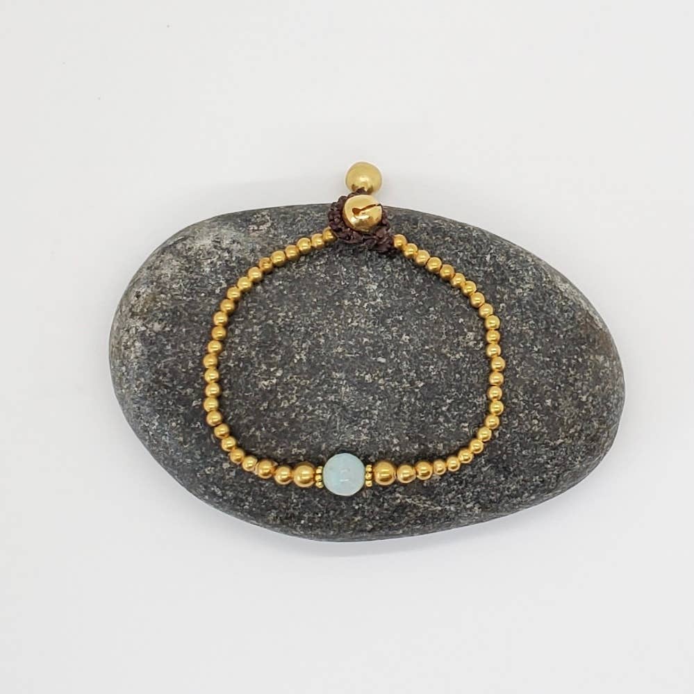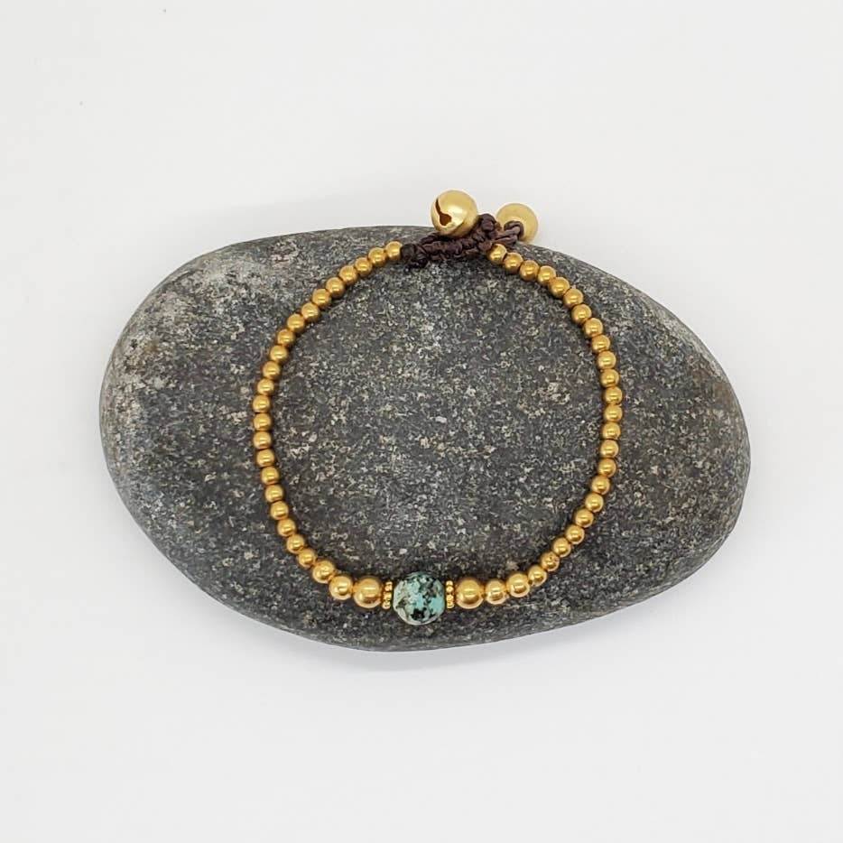 Adjustable brass beaded bracelet with faceted stone center. Choose African turquoise or Amazonite