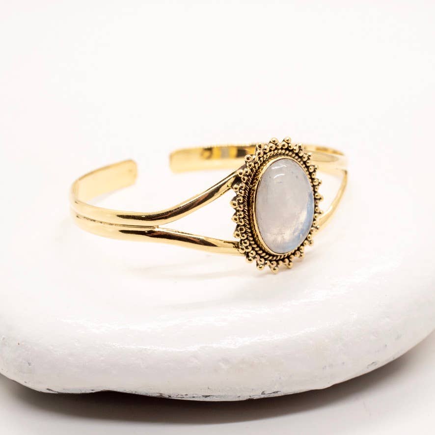 Labradorite and Tourmaline Decorated Cuff Bracelet in Brass