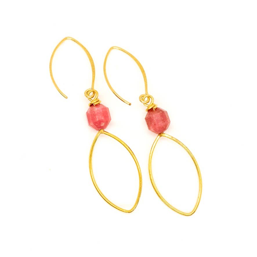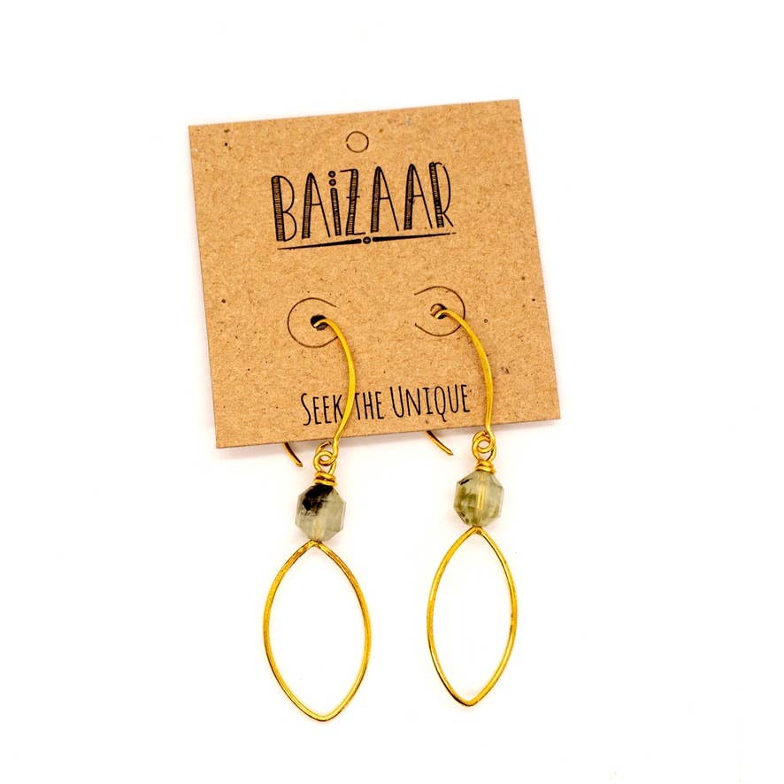 Brass diamond shaped earring with stone.