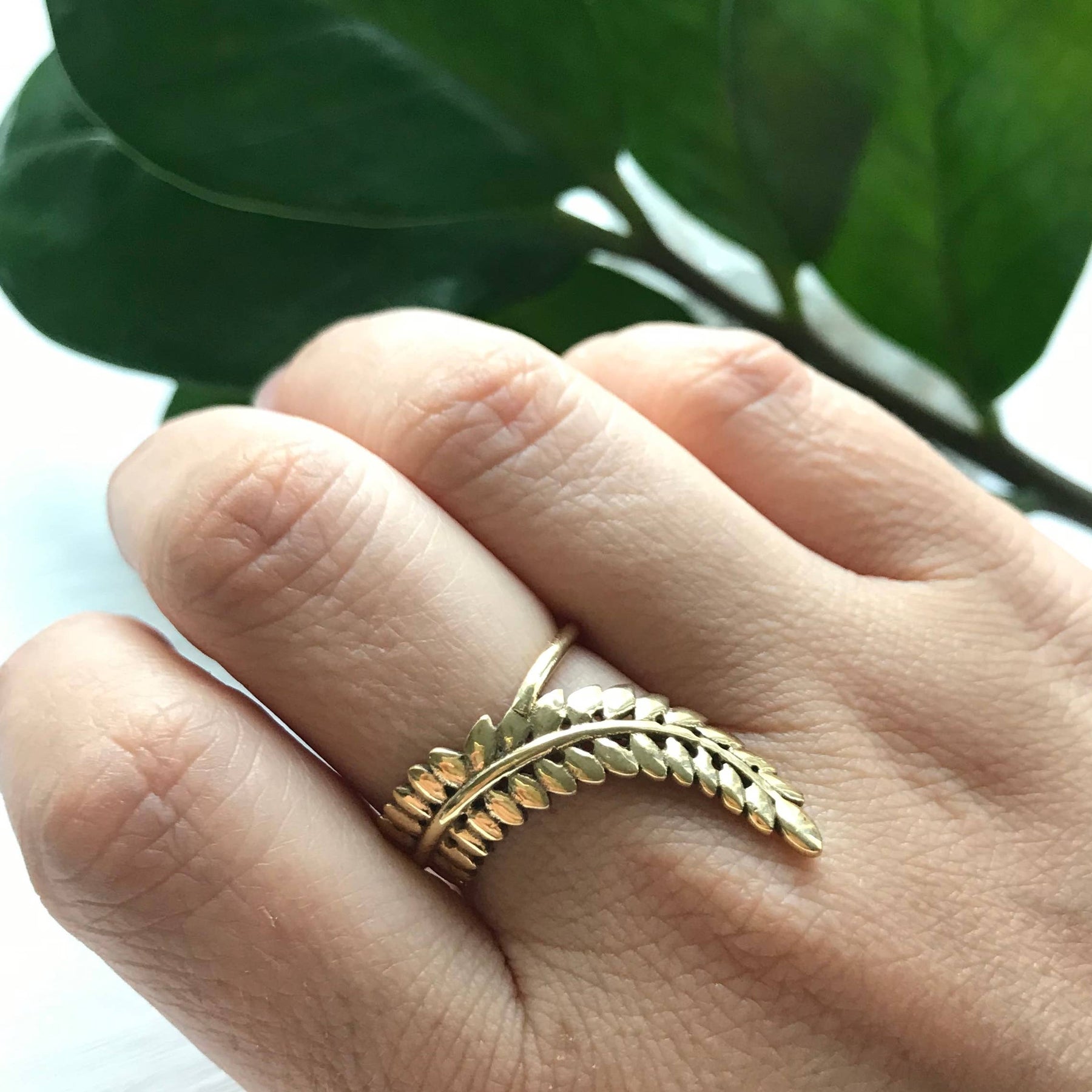 Brass draped leaf ring