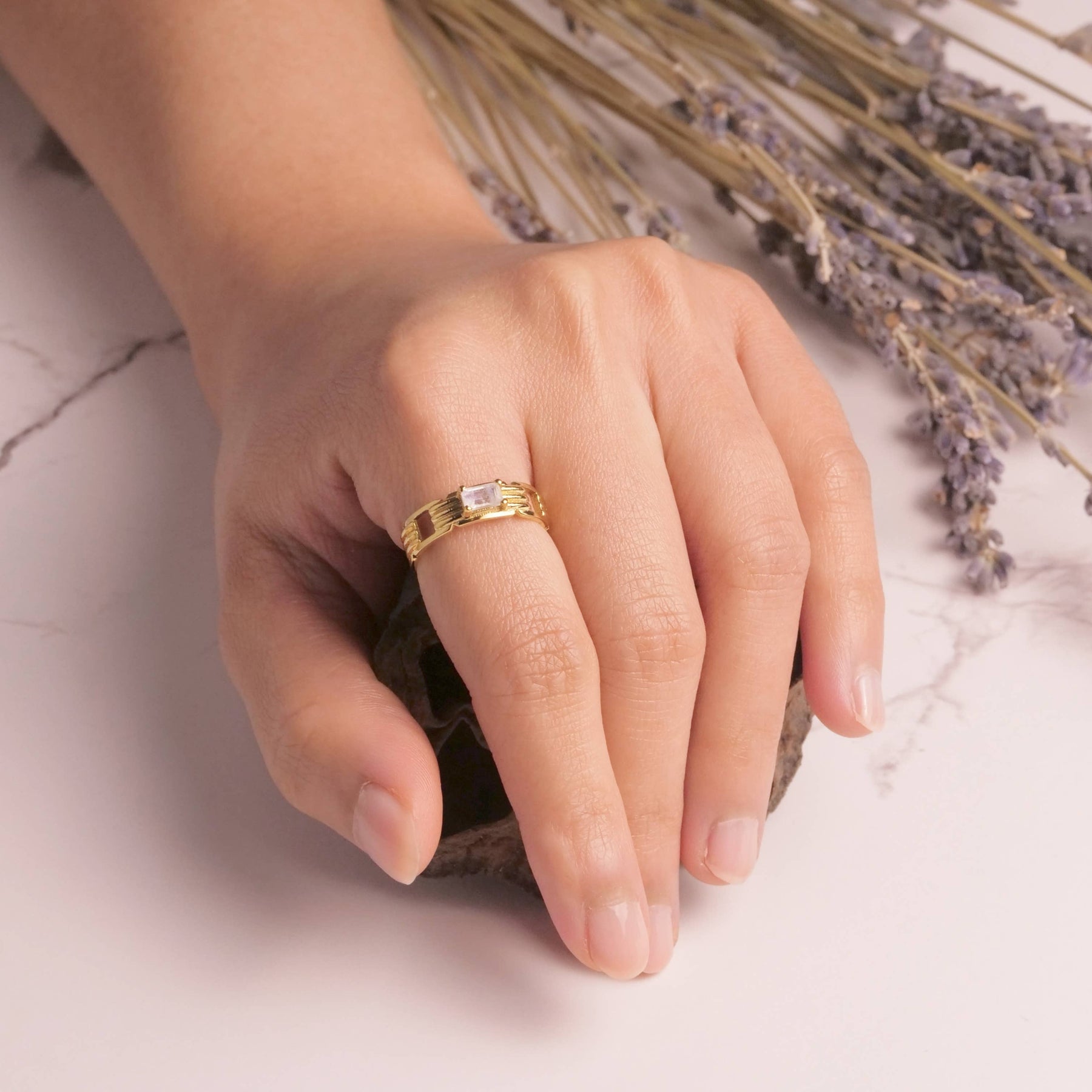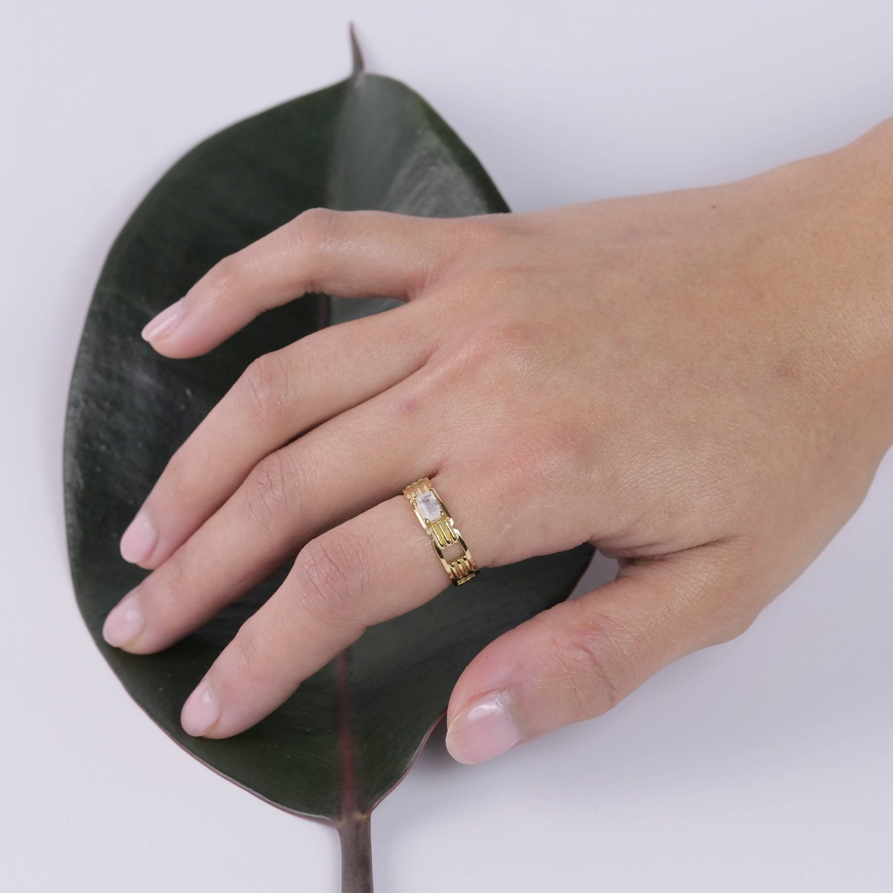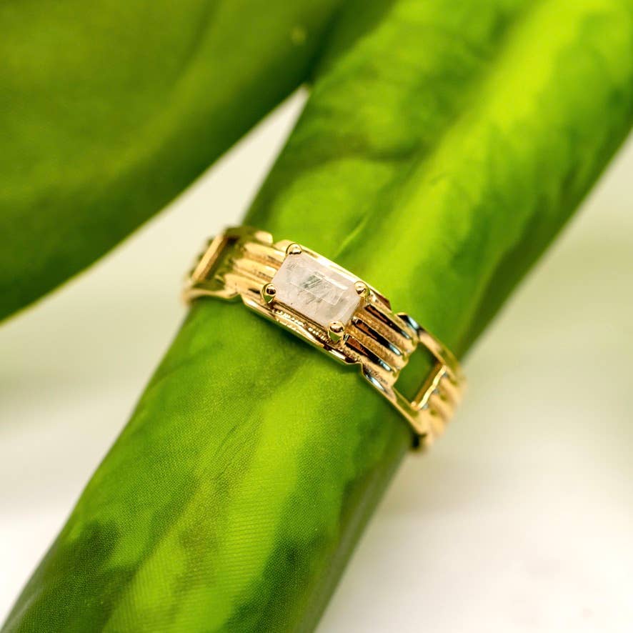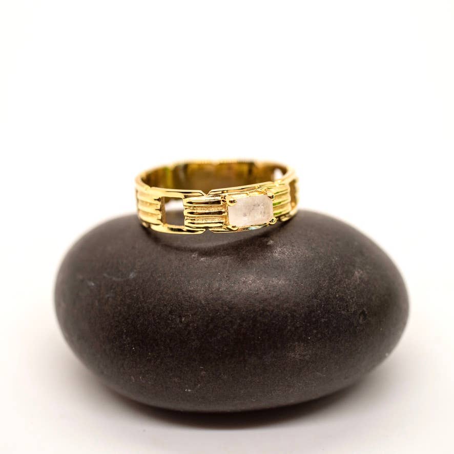Brass Moonstone Chainlink Ring available in size 5-9.