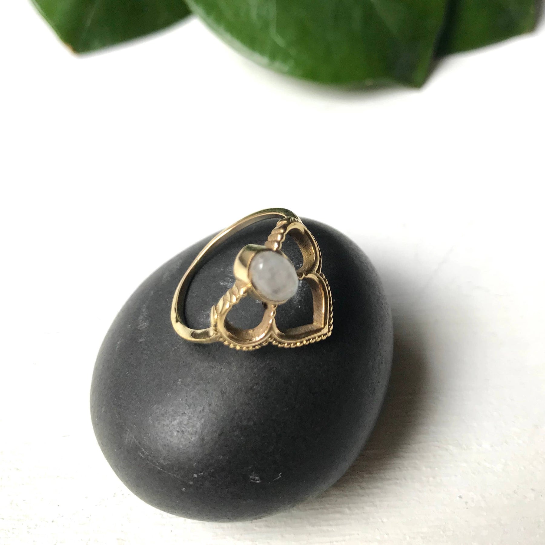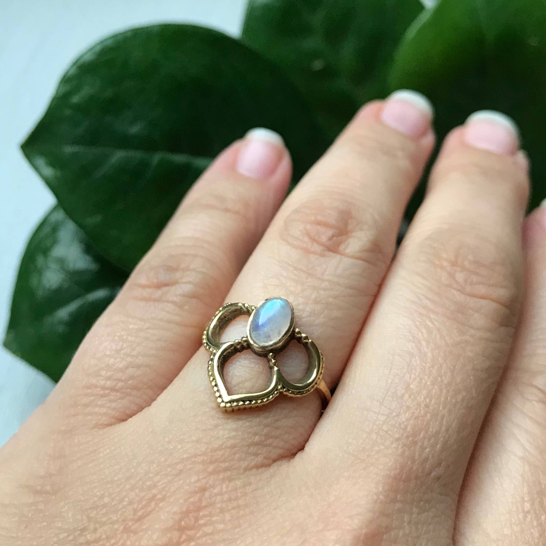 This uniquely designed ring by Baizaar showcases the stunning moonstone, encased in a handcrafted brass petal setting. Ideal for Christmas gifting or treating yourself, this fair trade piece captures the spirit and soul of our artisans in India and Thailand. The ring comes in recyclable packaging, affirming our commitment to ethical sourcing and environmental responsibility. Wear this ring and embody the adventurous mix of traditional and innovative work that defines Baizaar.
