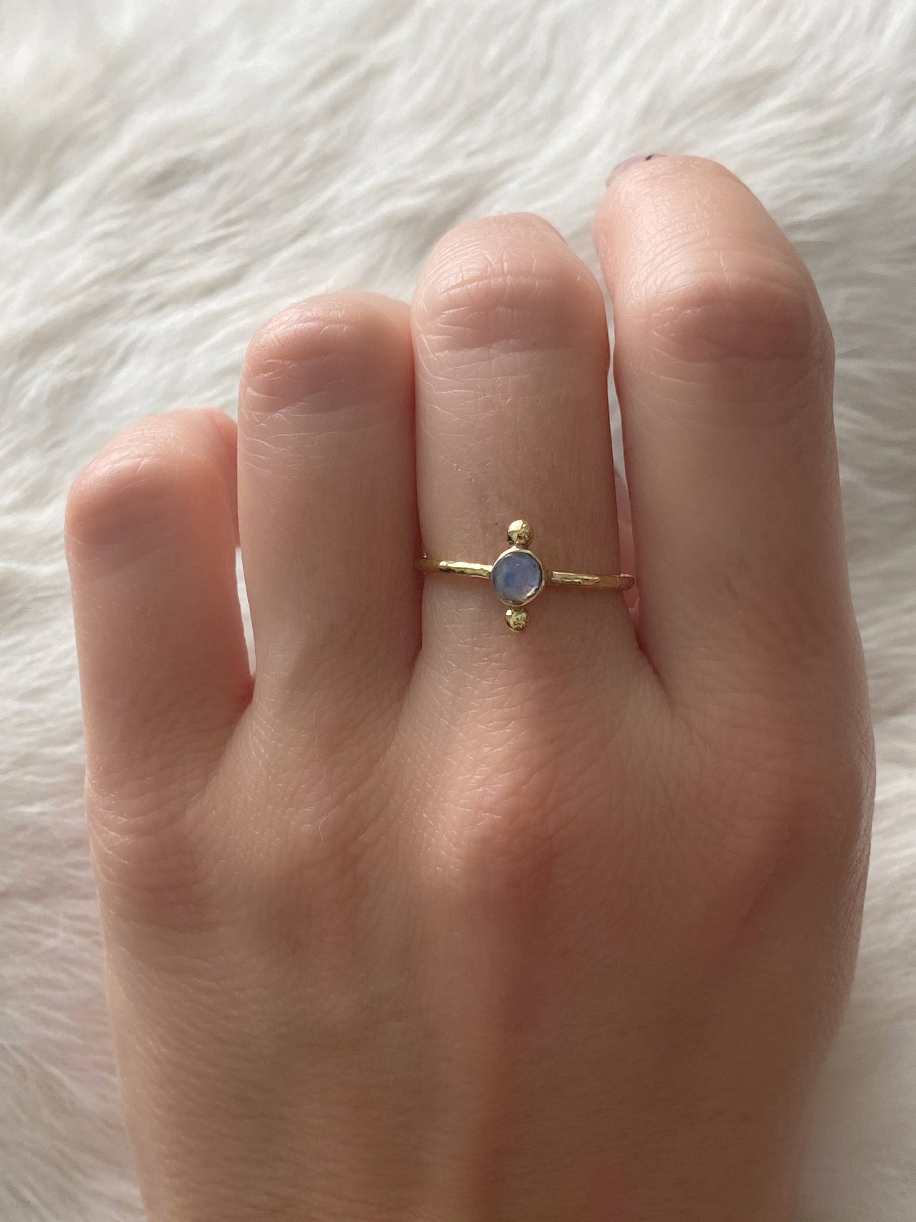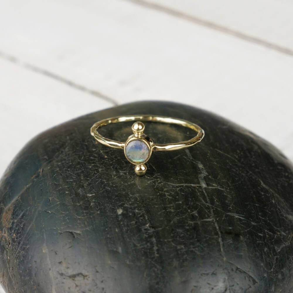 Brass Spotted Stone Ring with Faceted Moonstone.