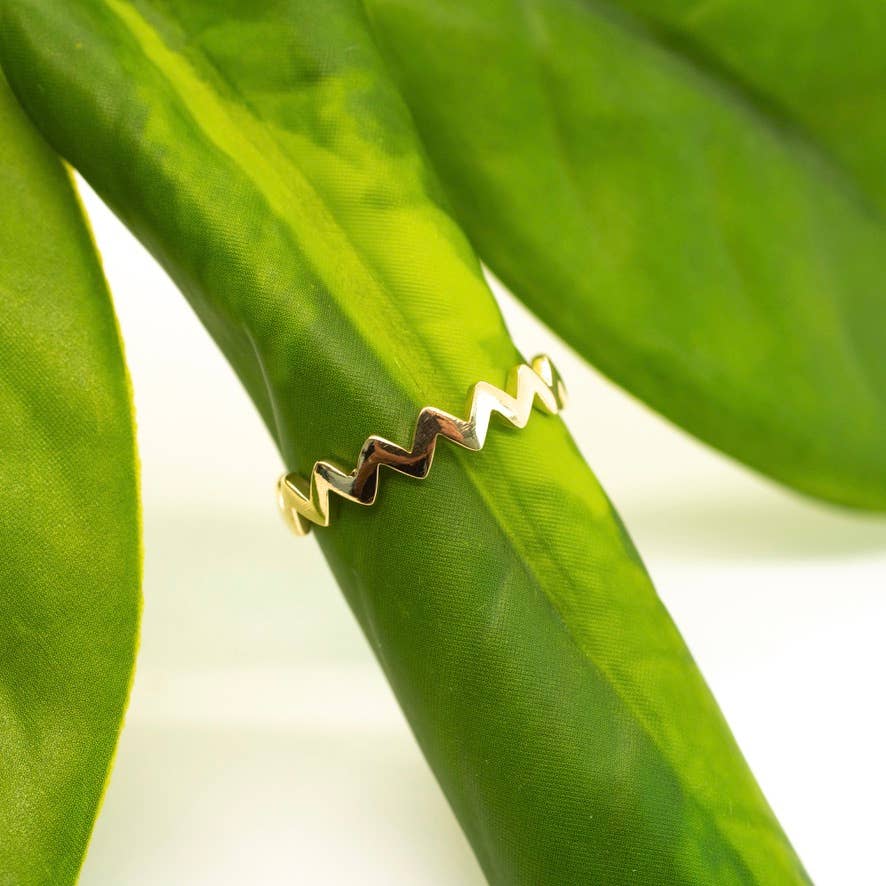 Experience the soulful and spirited craftsmanship of the Brass Zigzag Ring, brought to you by Baizaar. This band ring showcases a unique zigzag design, made from ethically sourced brass. It's an adventurous mix of traditional and innovative work, perfect for the Christmas season. Plus, it comes in recyclable packaging, staying true to our commitment to sustainability. This piece is a testament to our support for fair trade practices, empowering artisans in India and Thailand. Wear it alone or stack it for a bold look.