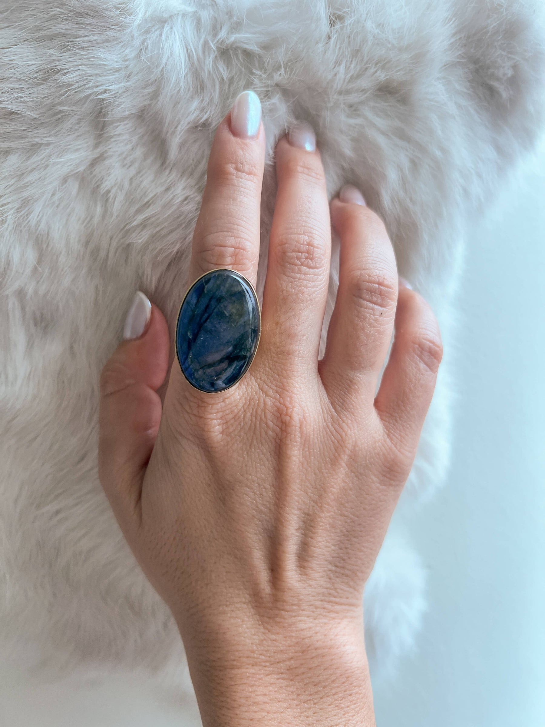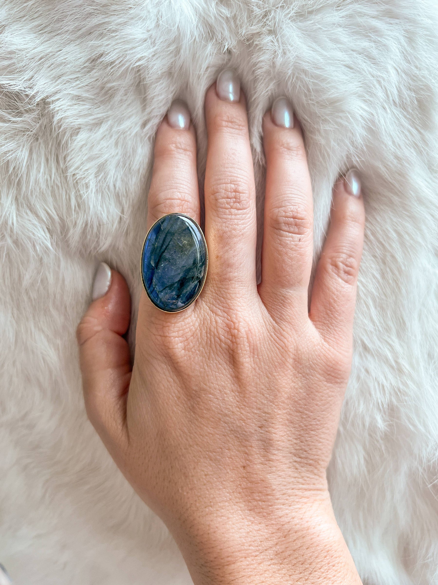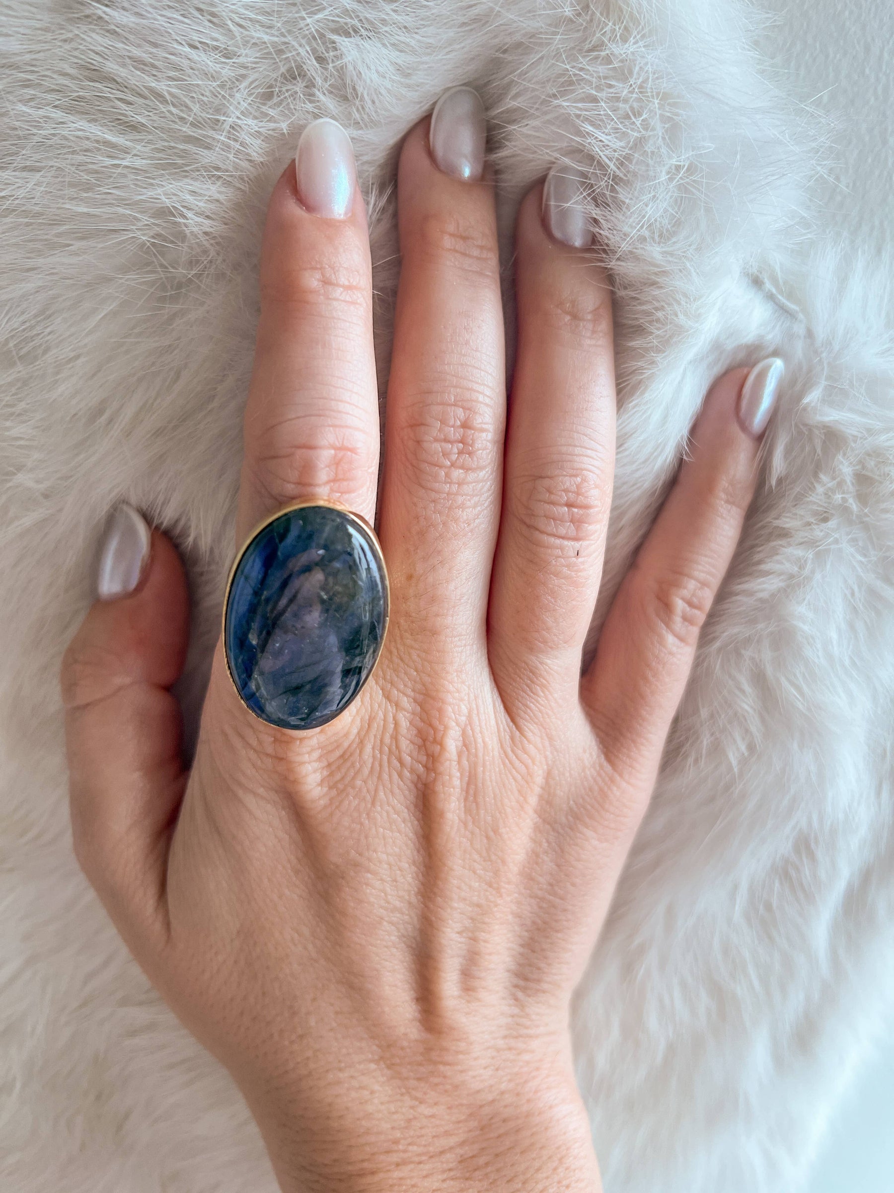Large freeform Stone Ring with Labradorite. Rings with come with different shape stones (oval, teardrop etc.)