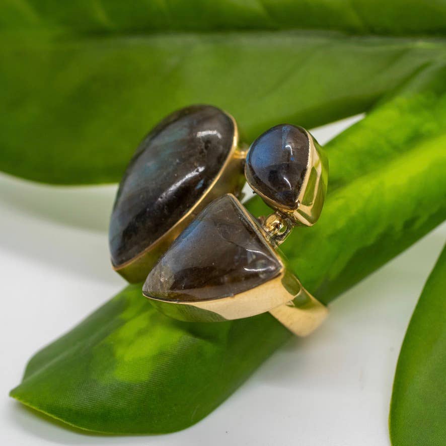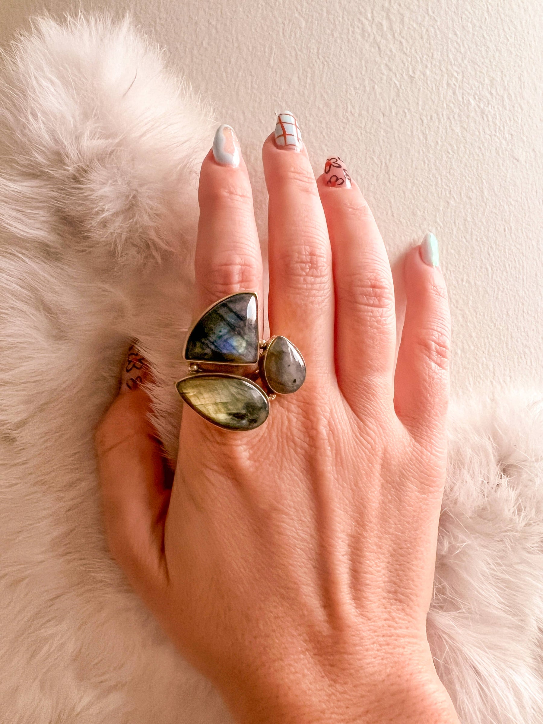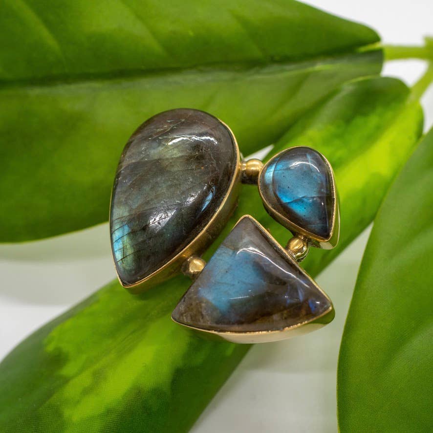 Natural Stone Cluster Brass Ring with Labradorite Stones