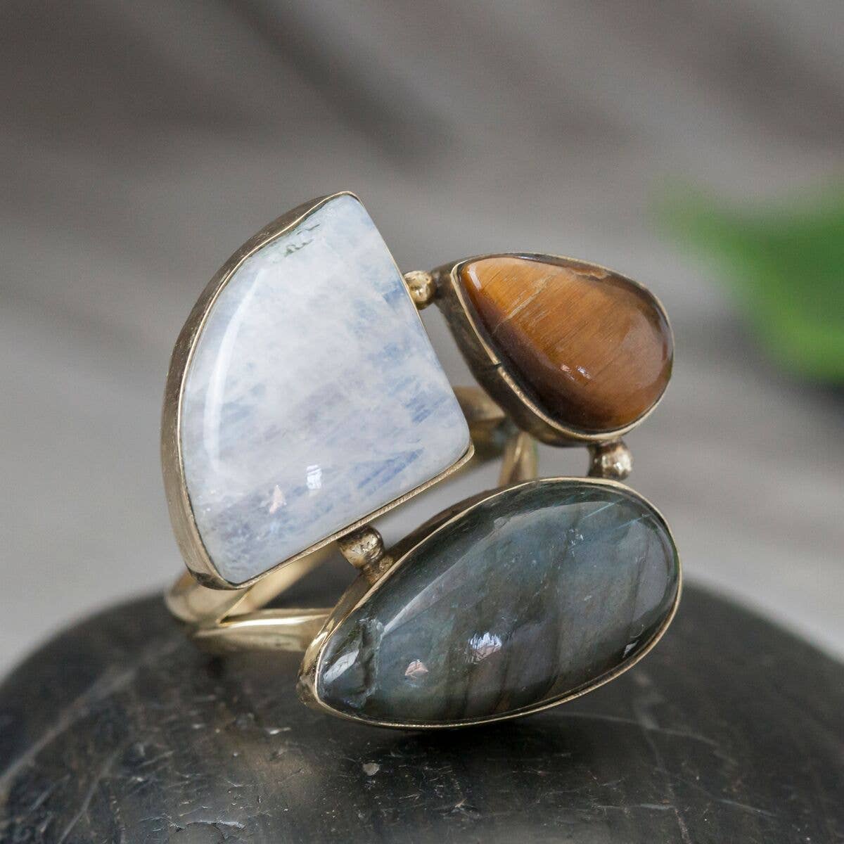 Natural Stone Cluster Brass Ring with Mixed Stones