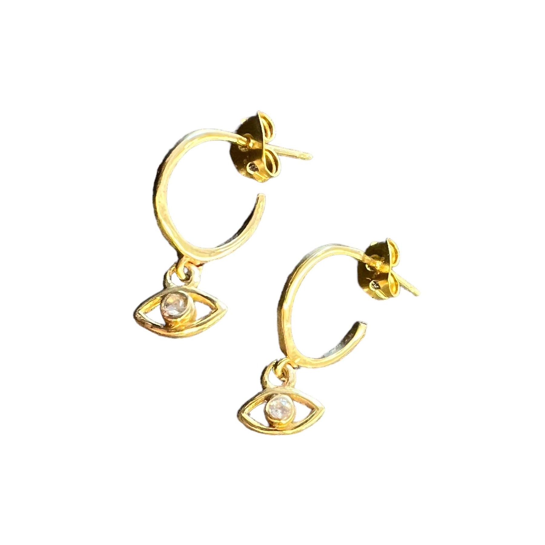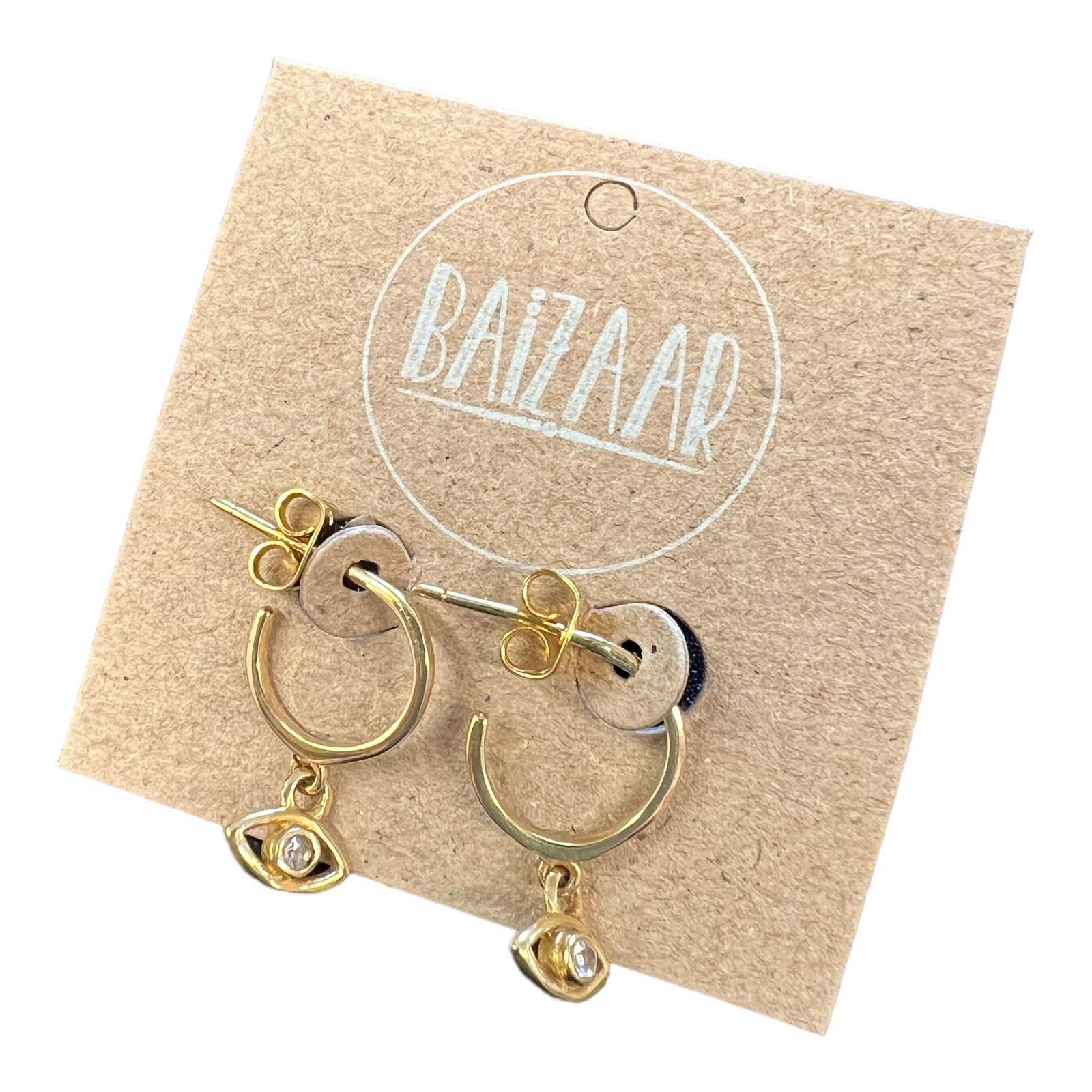 Brass Hoop Evil-Eye Drop Earring with Crystal 1