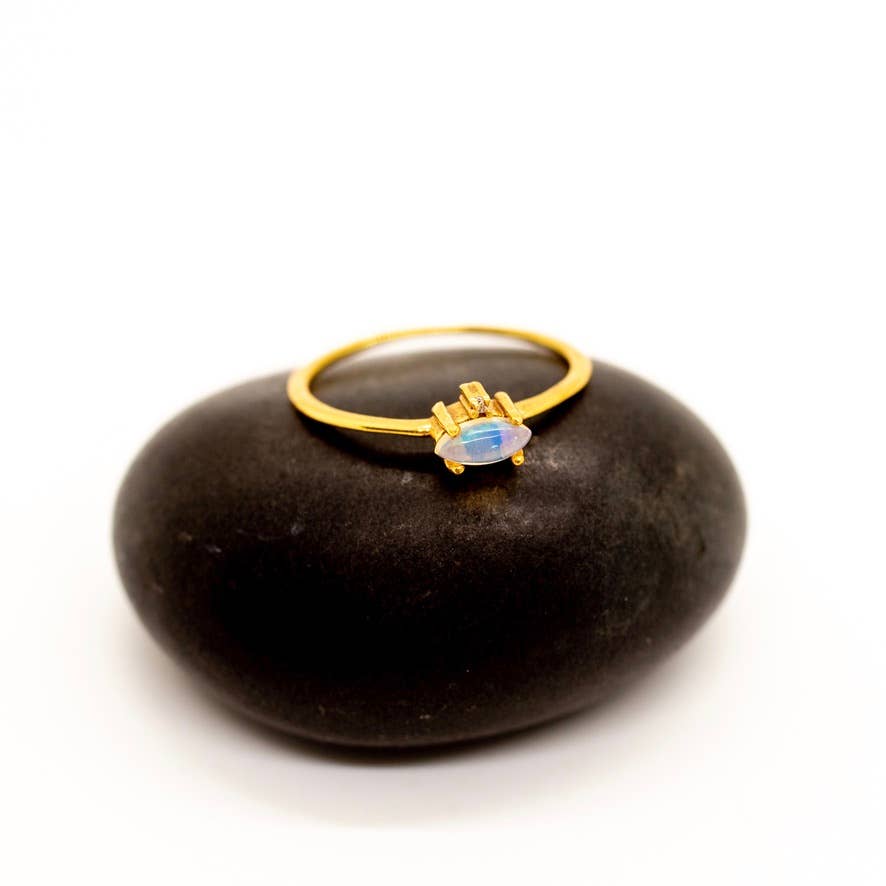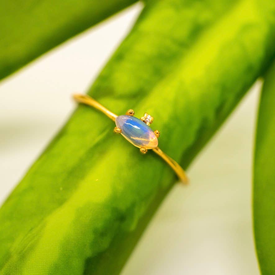 Brass ring featuring high quality opal and tiny faceted crystal, available in size 5-9.