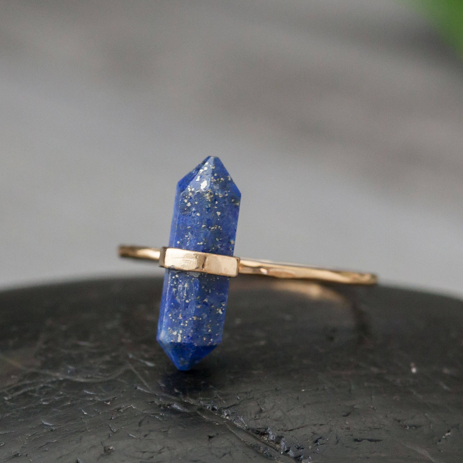 2 micron 22k gold plated crystal point ring. Available in crystal quartz, smoky quartz, lapis and turquoise.
