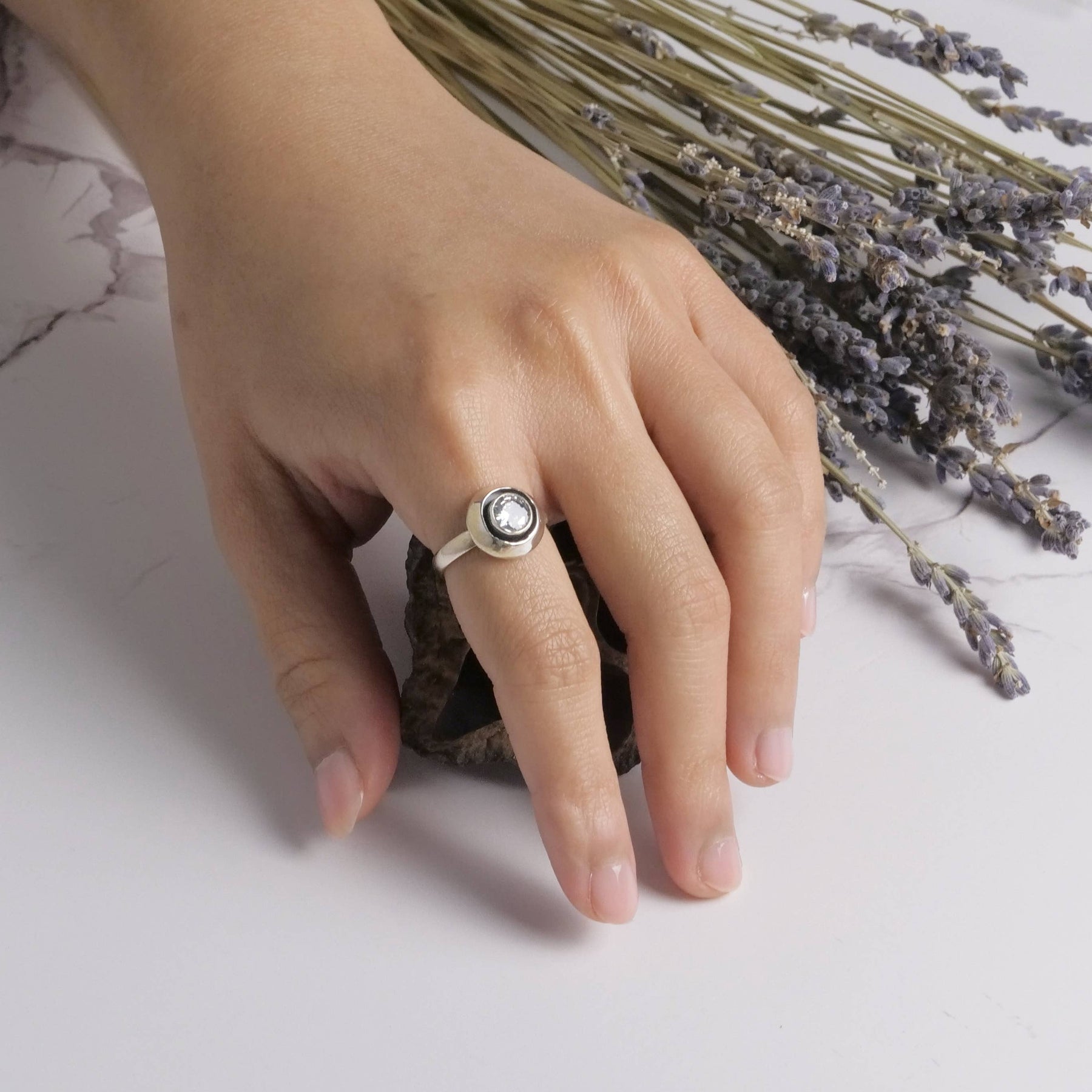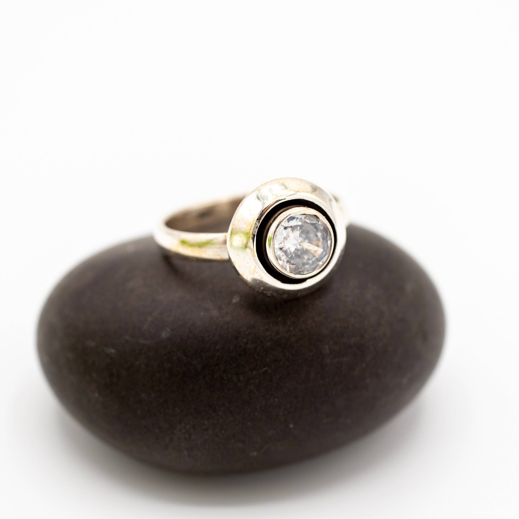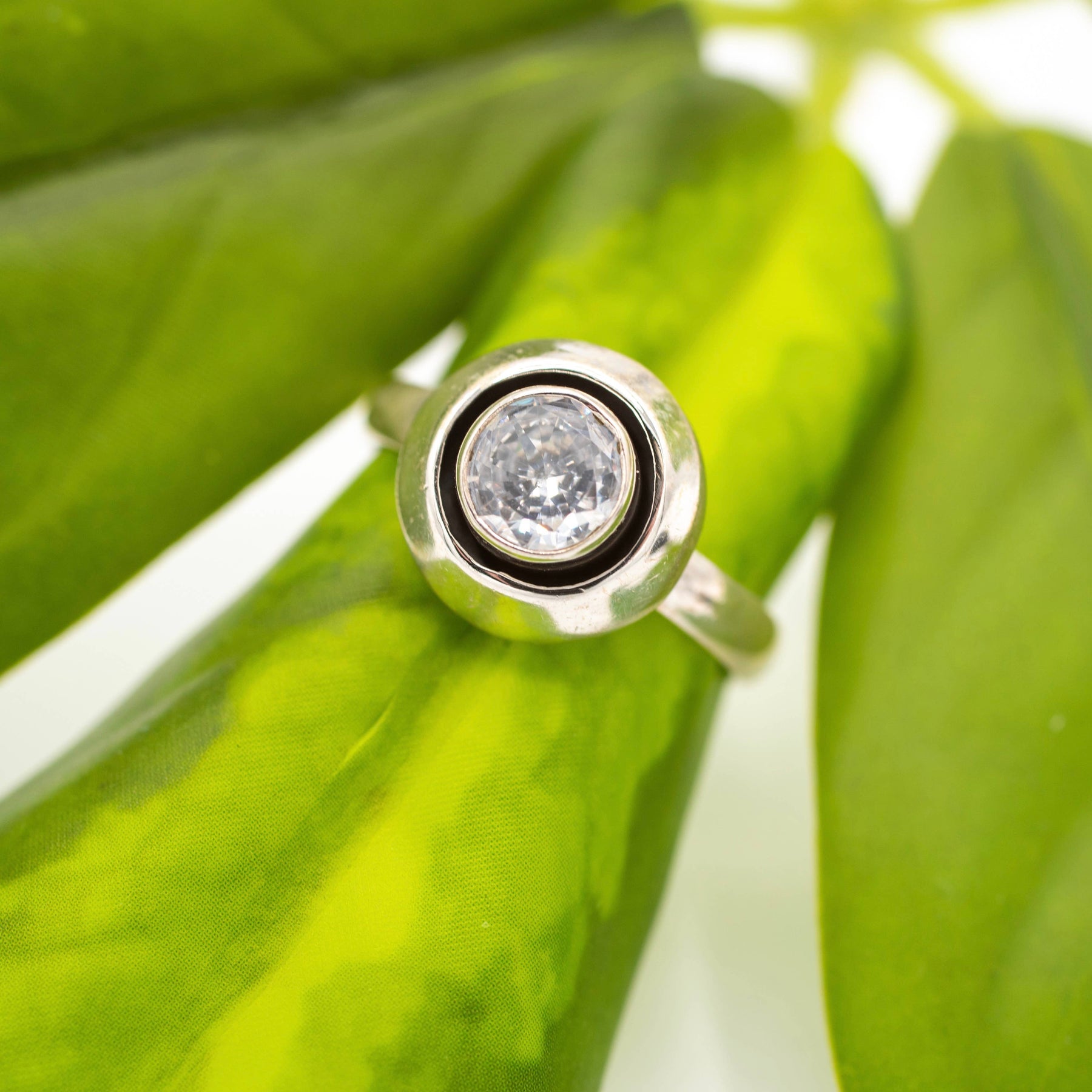 Sterling Silver Crystal Ring, available in sizes 5-9.