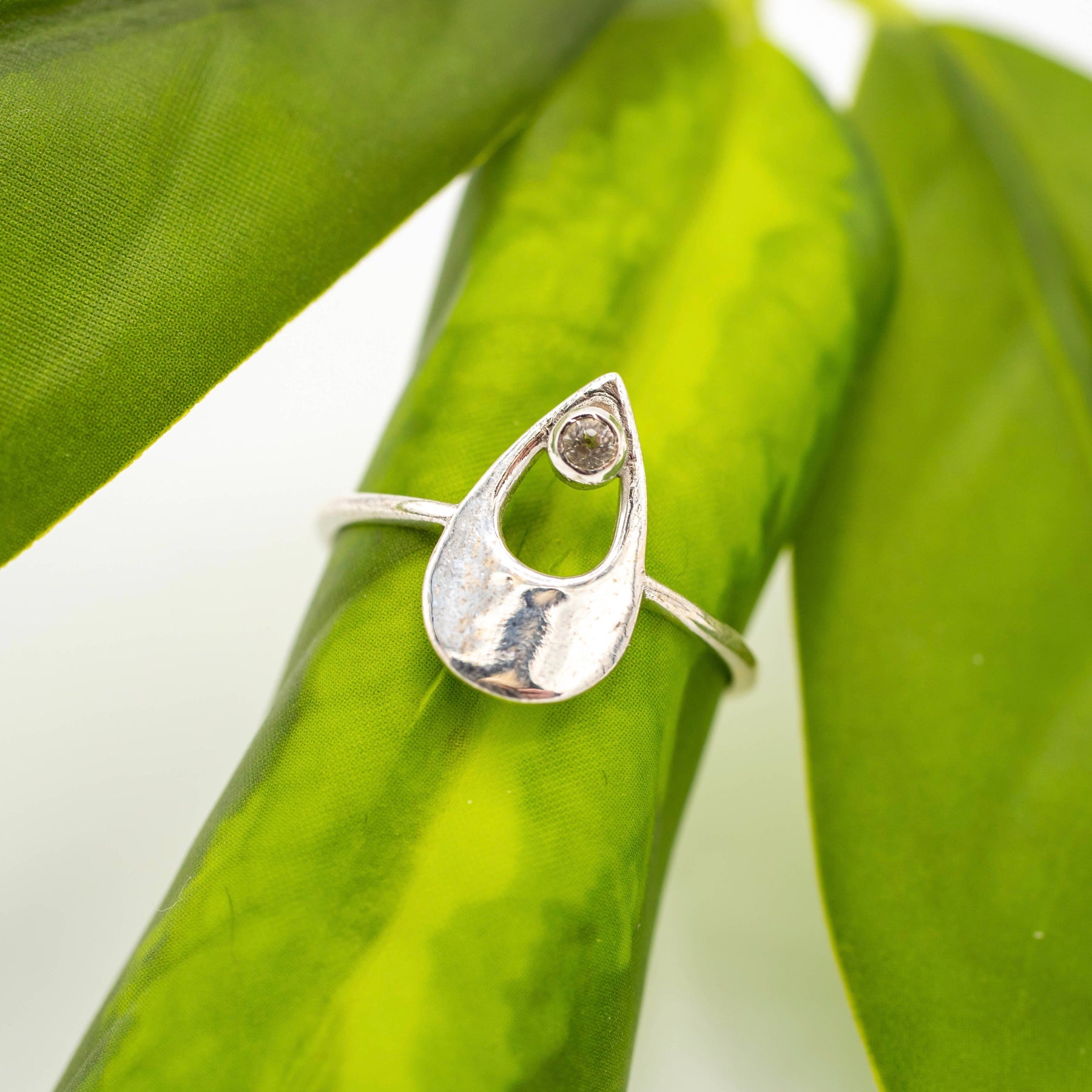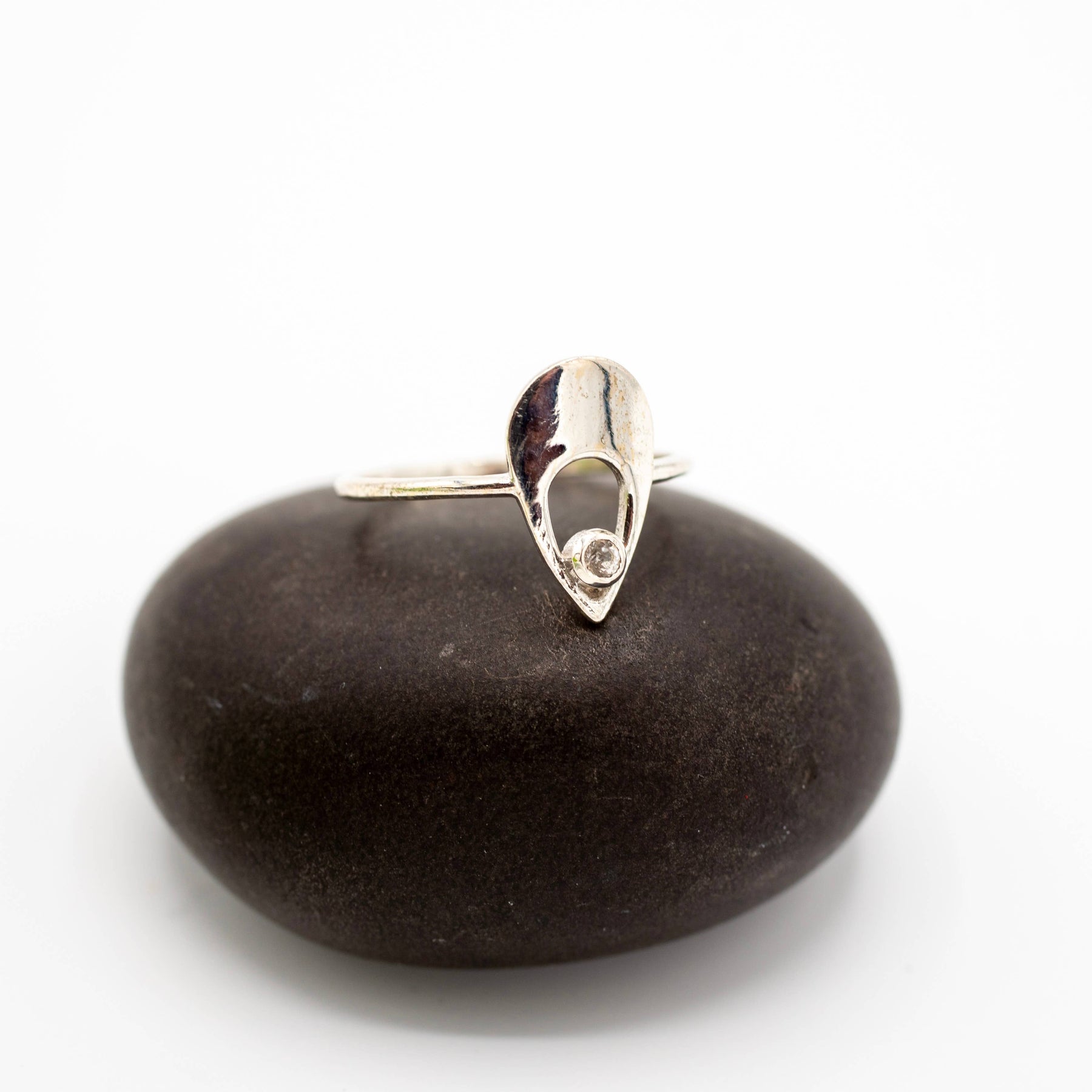 Sterling Silver Crystal Droplet Ring, available in sizes 5-9.