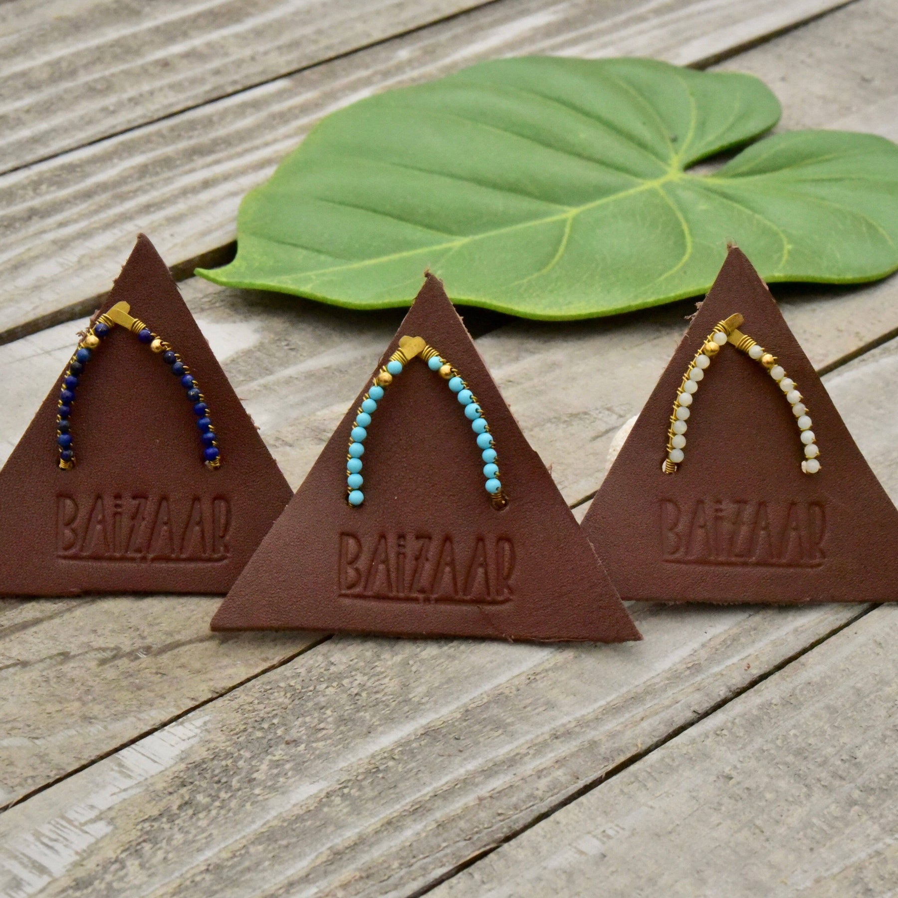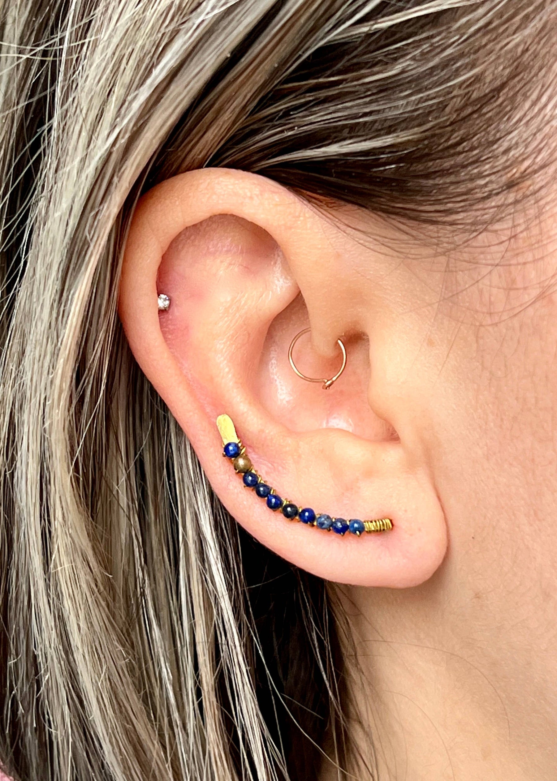 Brass beaded ear climber available in lapis, amazonite and turquoise.