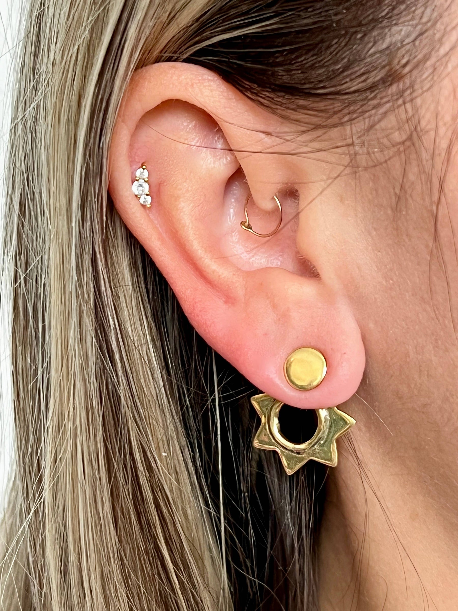 Brass sunburst ear jacket. Wear as a set, wear the stud alone or pair the jacket with any other stud!