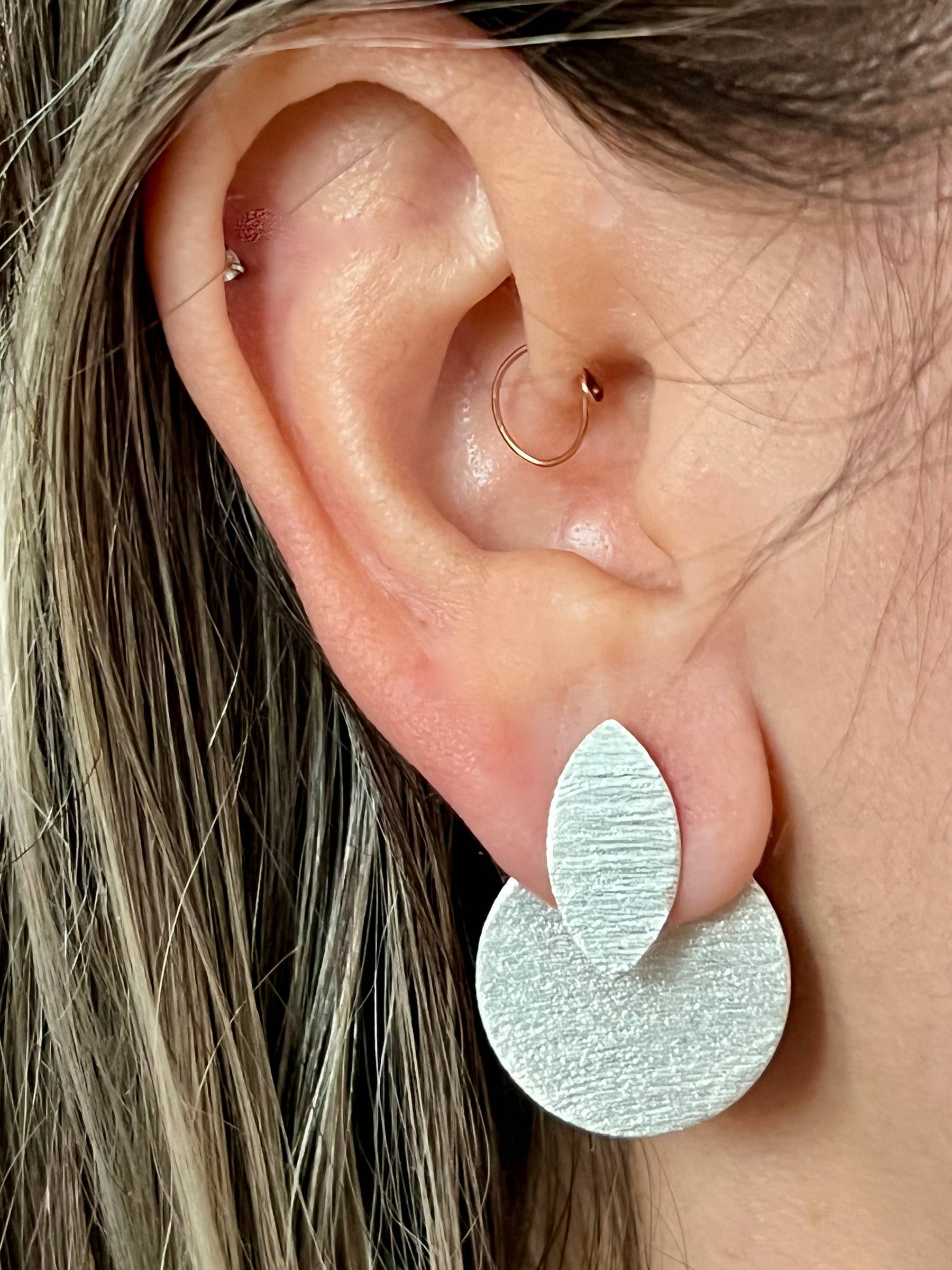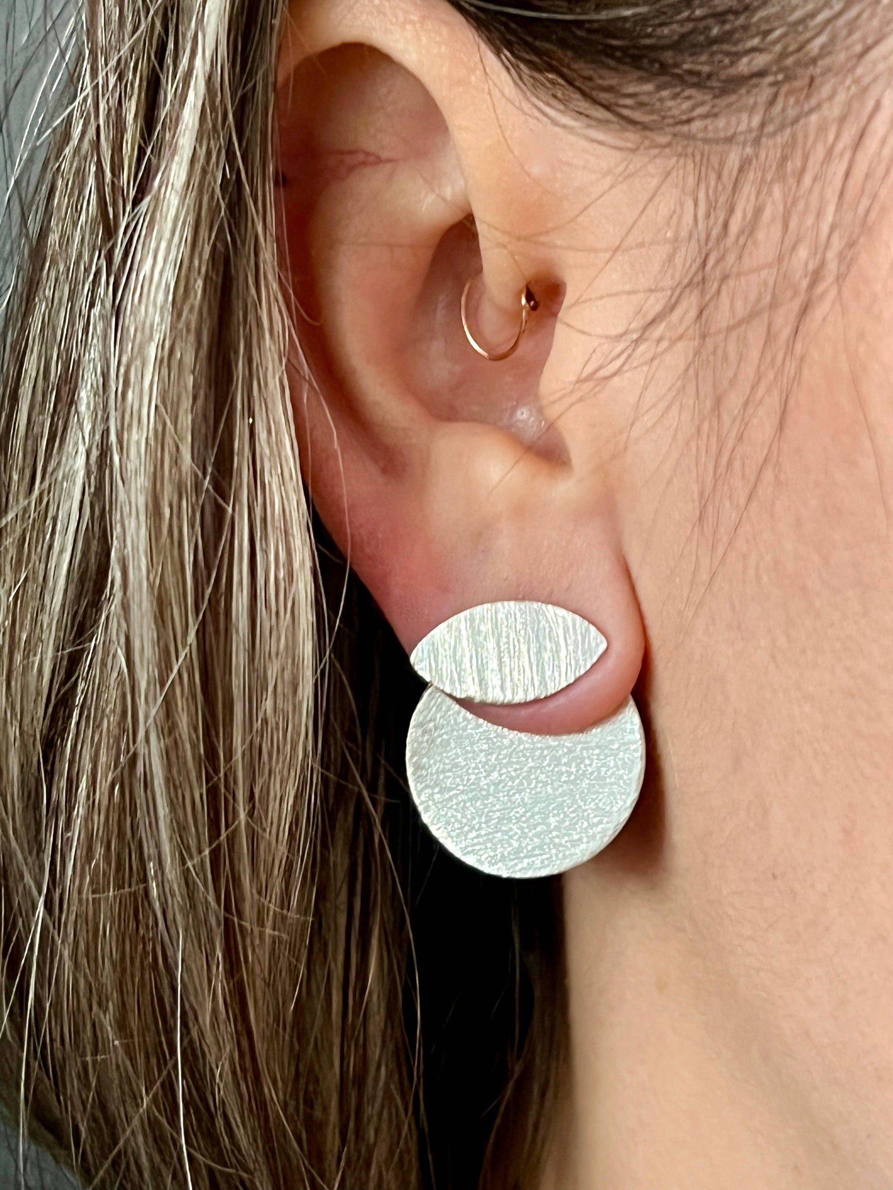 Brushed sterling silver moon phase ear jacket. Wear as a set, wear the stud alone or pair the jacket with any other stud!