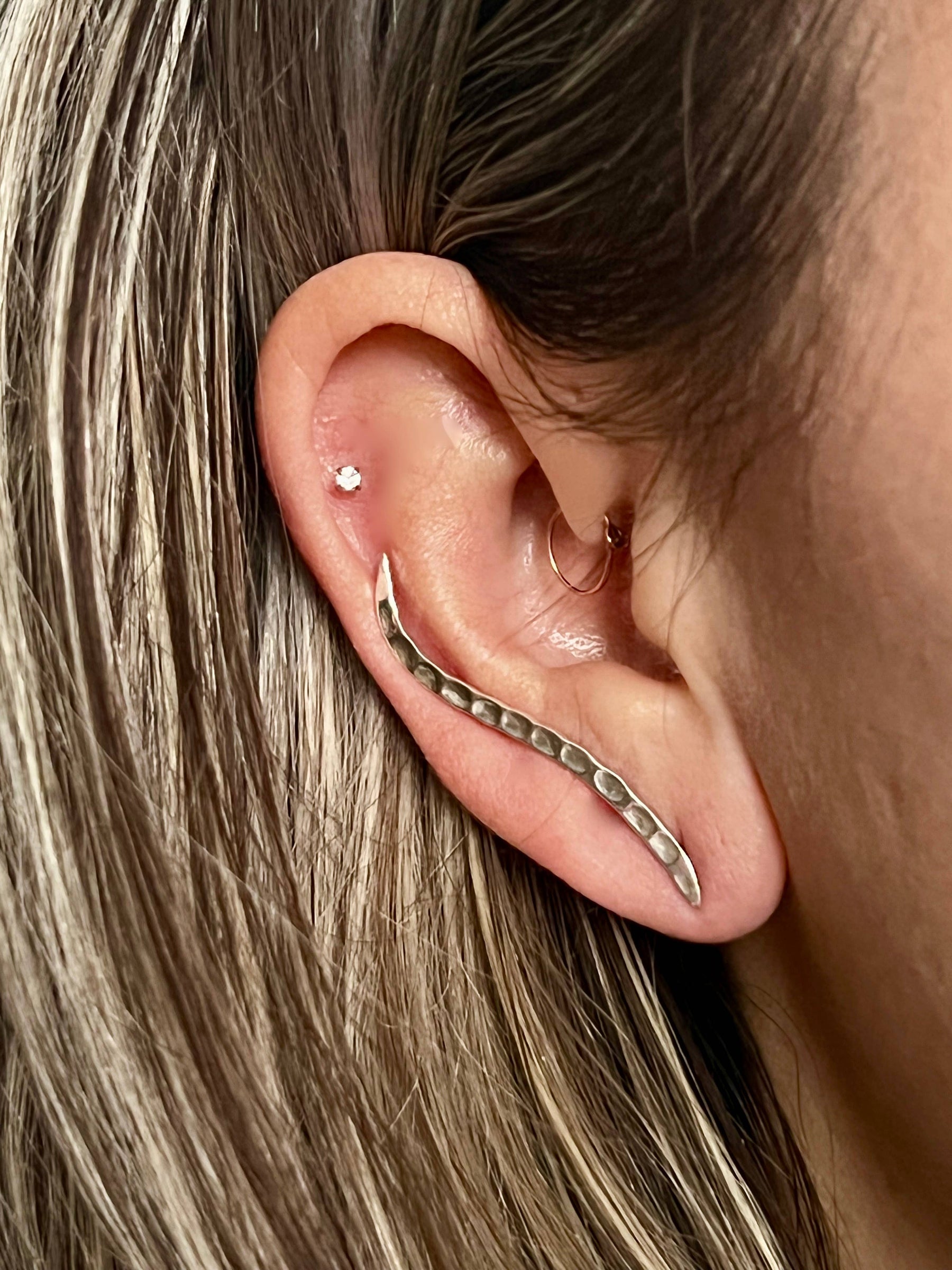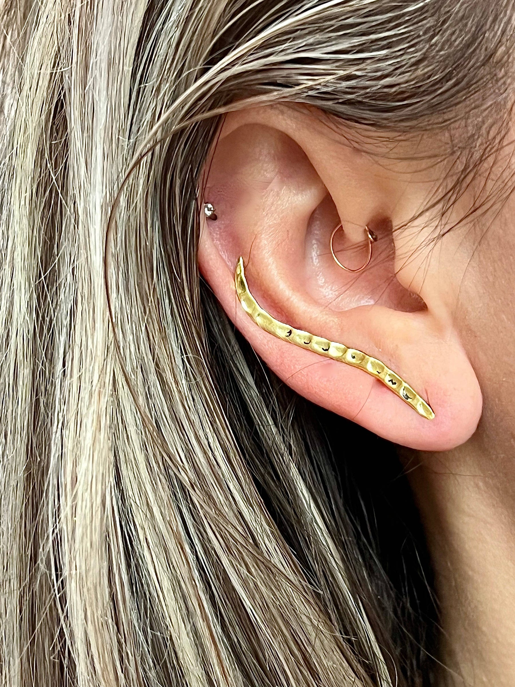 Our ear climbers and ear jackets are handmade in Northern India and are available in brass or sterling silver.