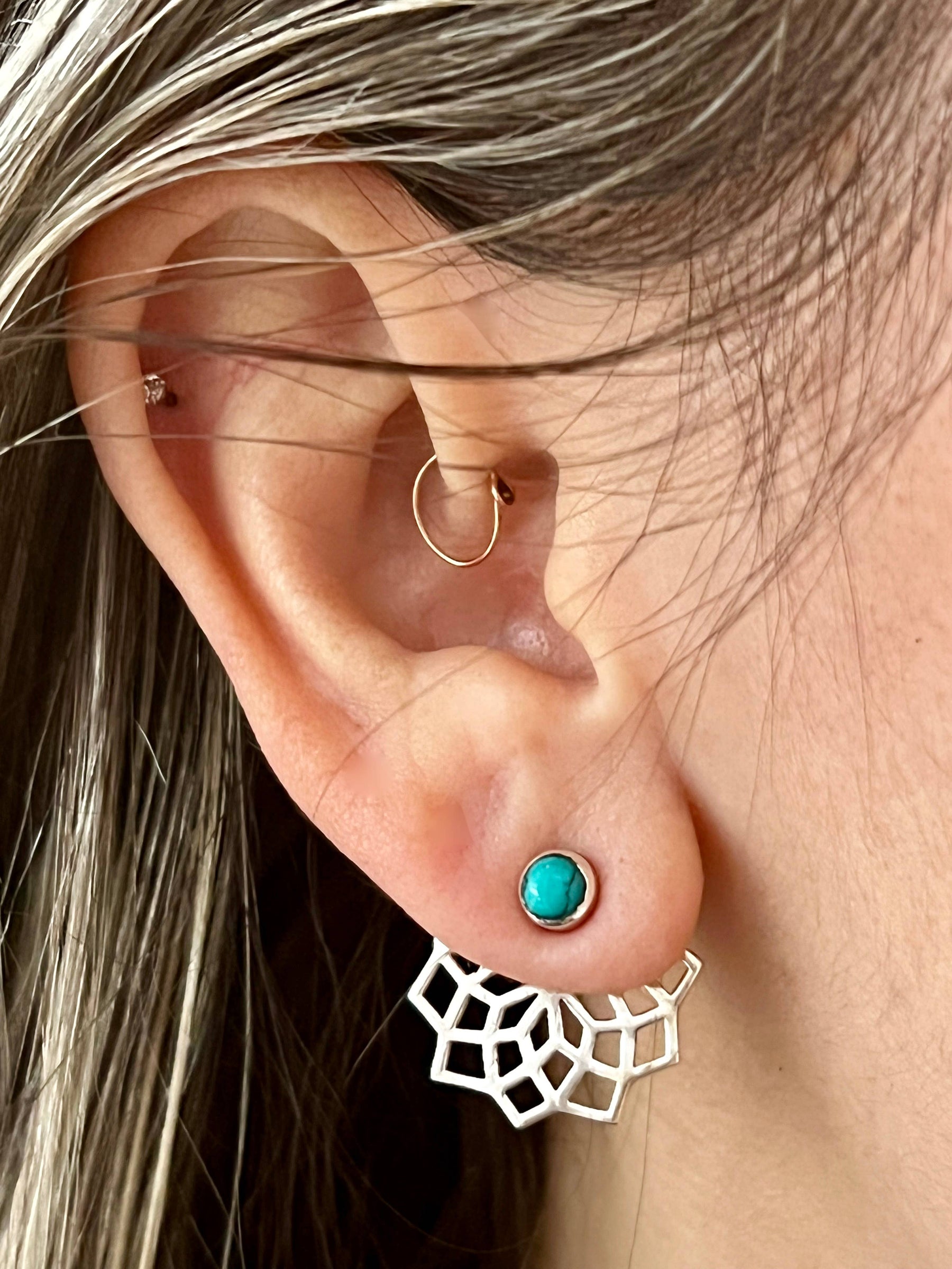Mandala stone sterling silver ear jacket. Wear as a set, wear the stud alone or pair the jacket with any other stud!