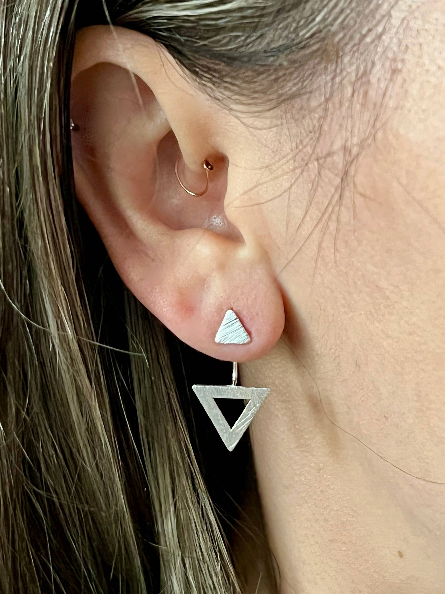 Peekaboo triangle design ear jacket in sterling silver. Wear as a set, wear the stud alone or pair the jacket with any other stud!