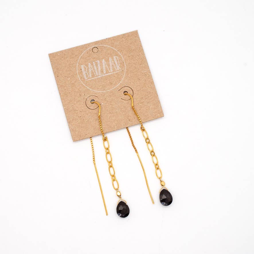 Gold plated brass chain threader earring featuring faceted Tourmaline or Amazonite stone