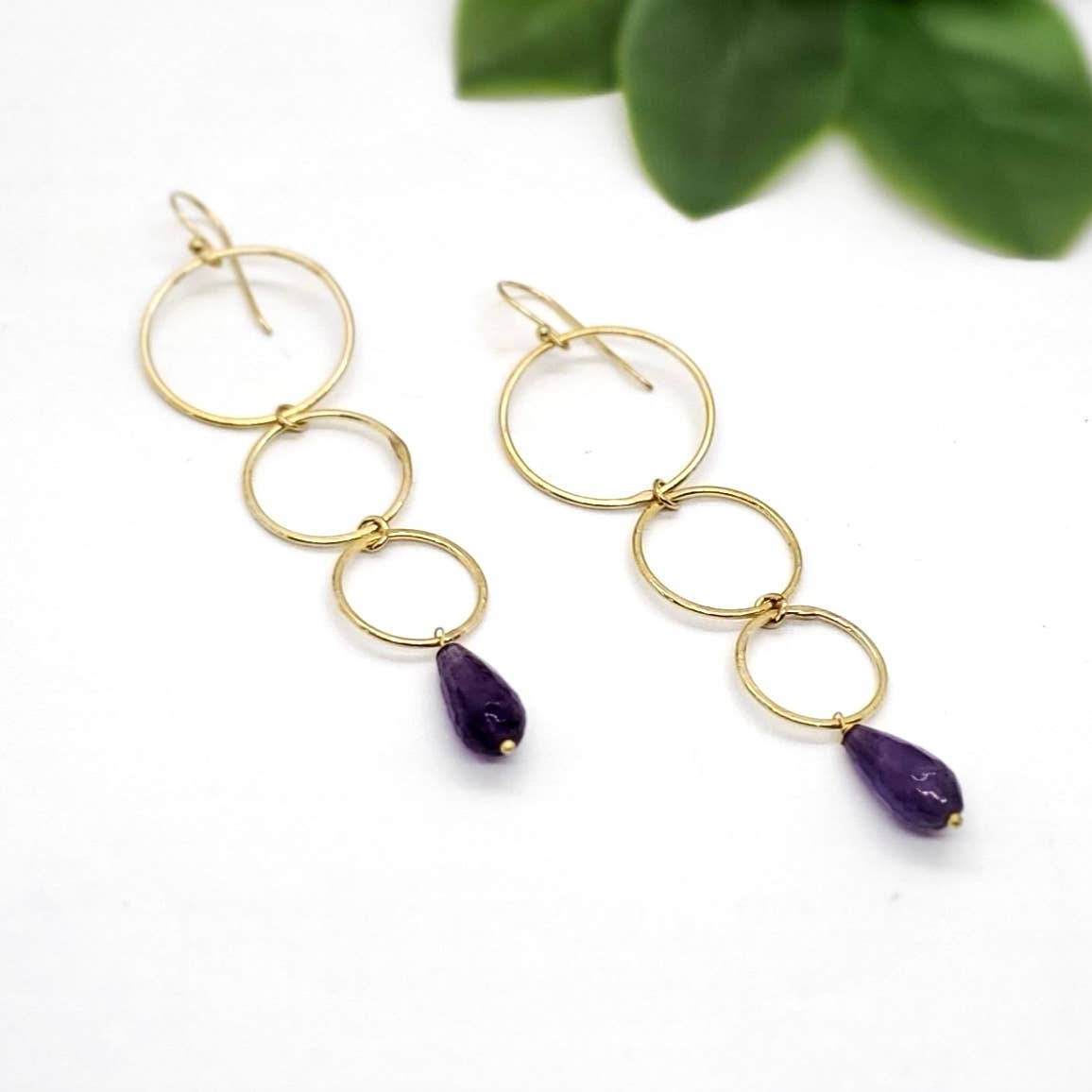 Triple brass hoop stone earrings.