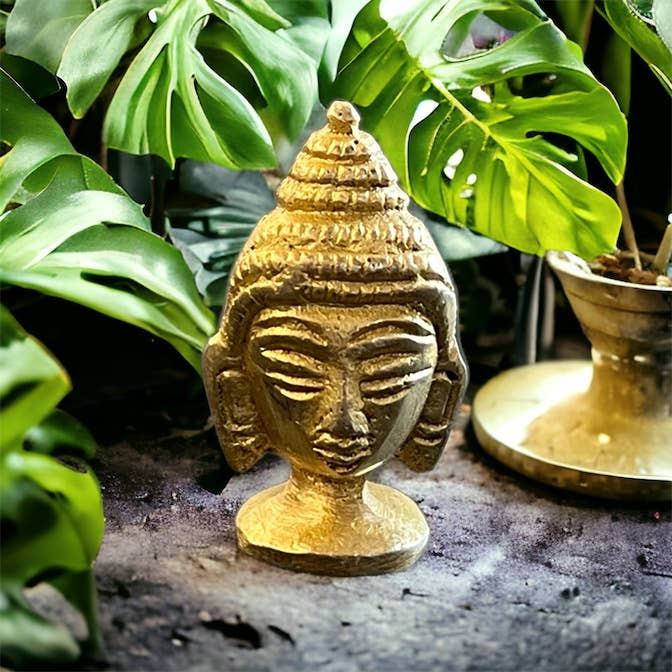 Mini brass Buddha head figurine/statue. A beautiful gift for someone's home or office decor.