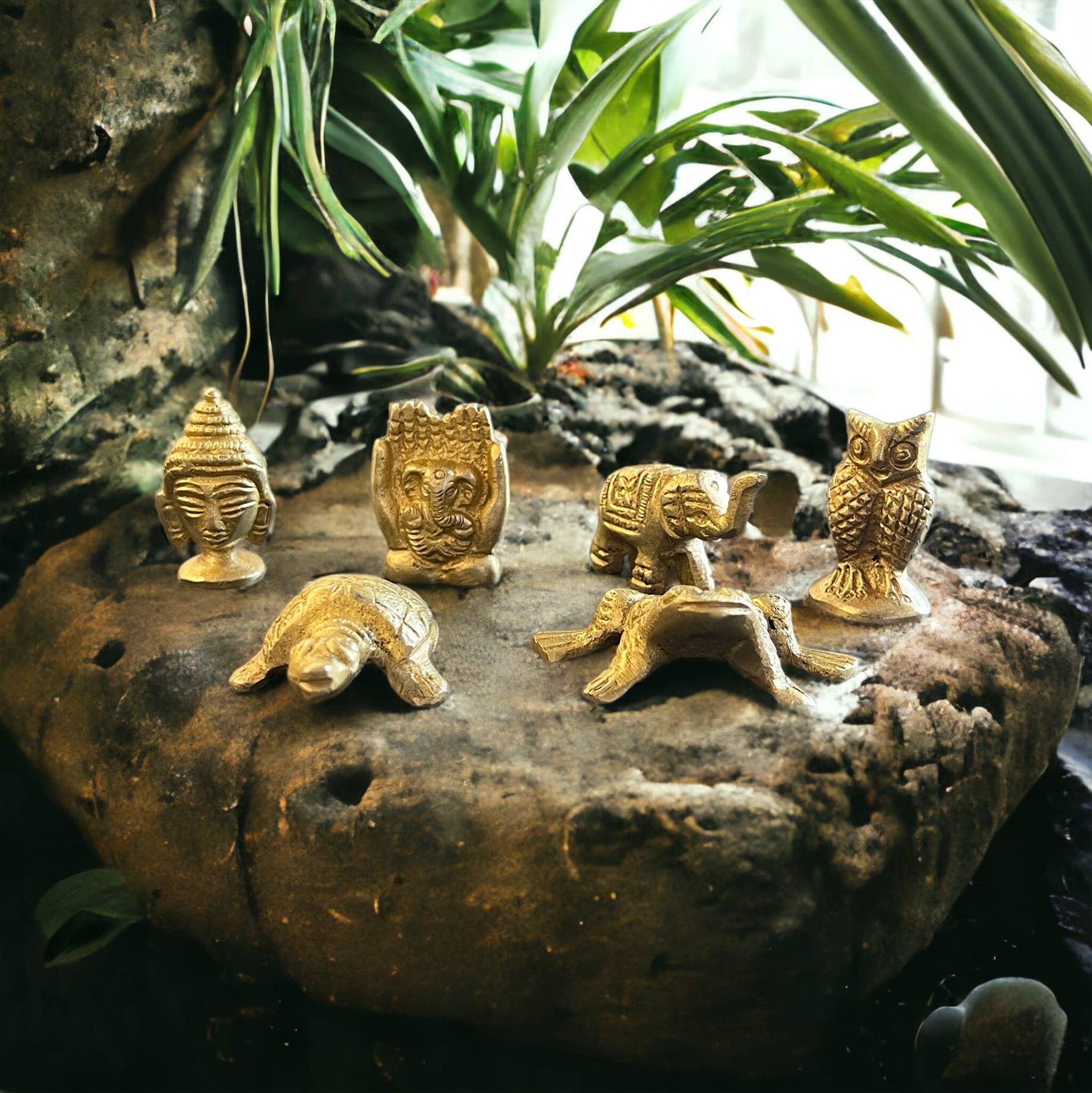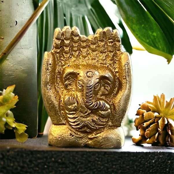Mini brass Ganesh figurine/statue. Symbolizing protection and the removal of obstacles, this is a beautiful gift for someone's home or office decor.