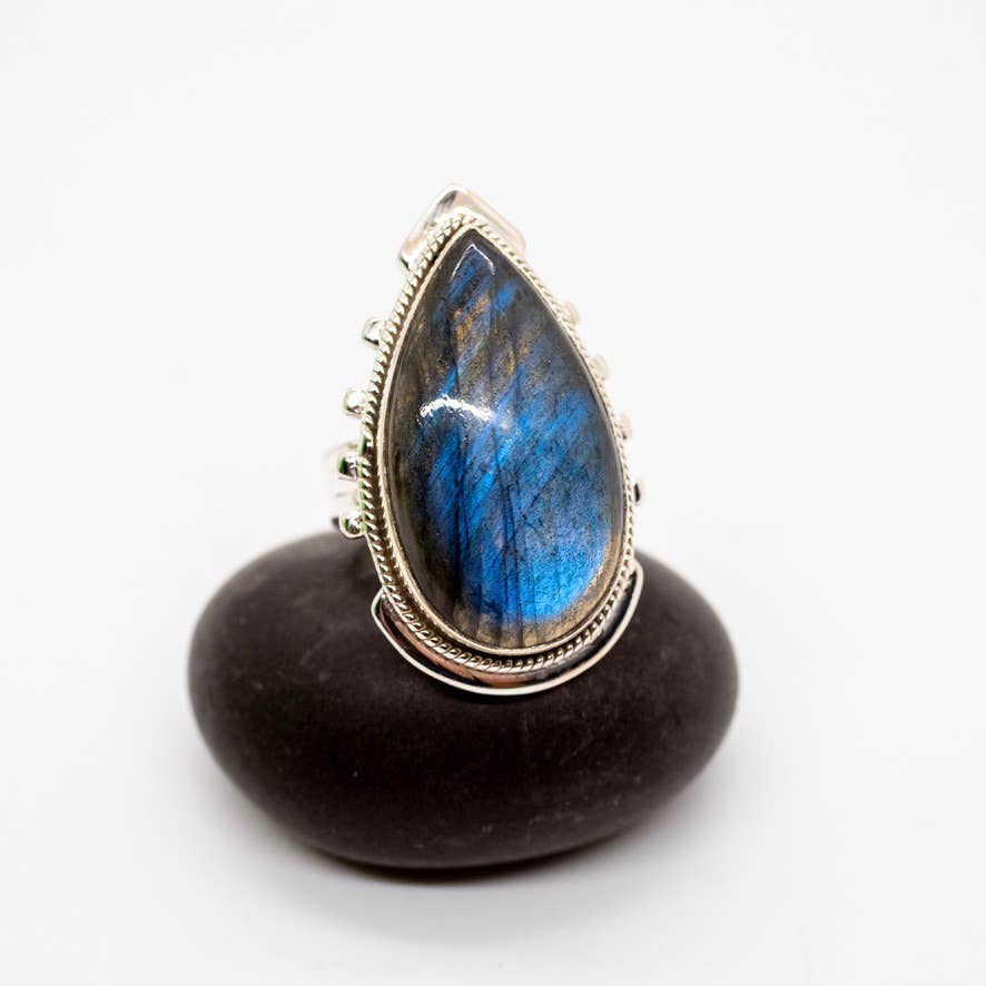 Teardrop Labradorite Sterling Silver Ring (Large)