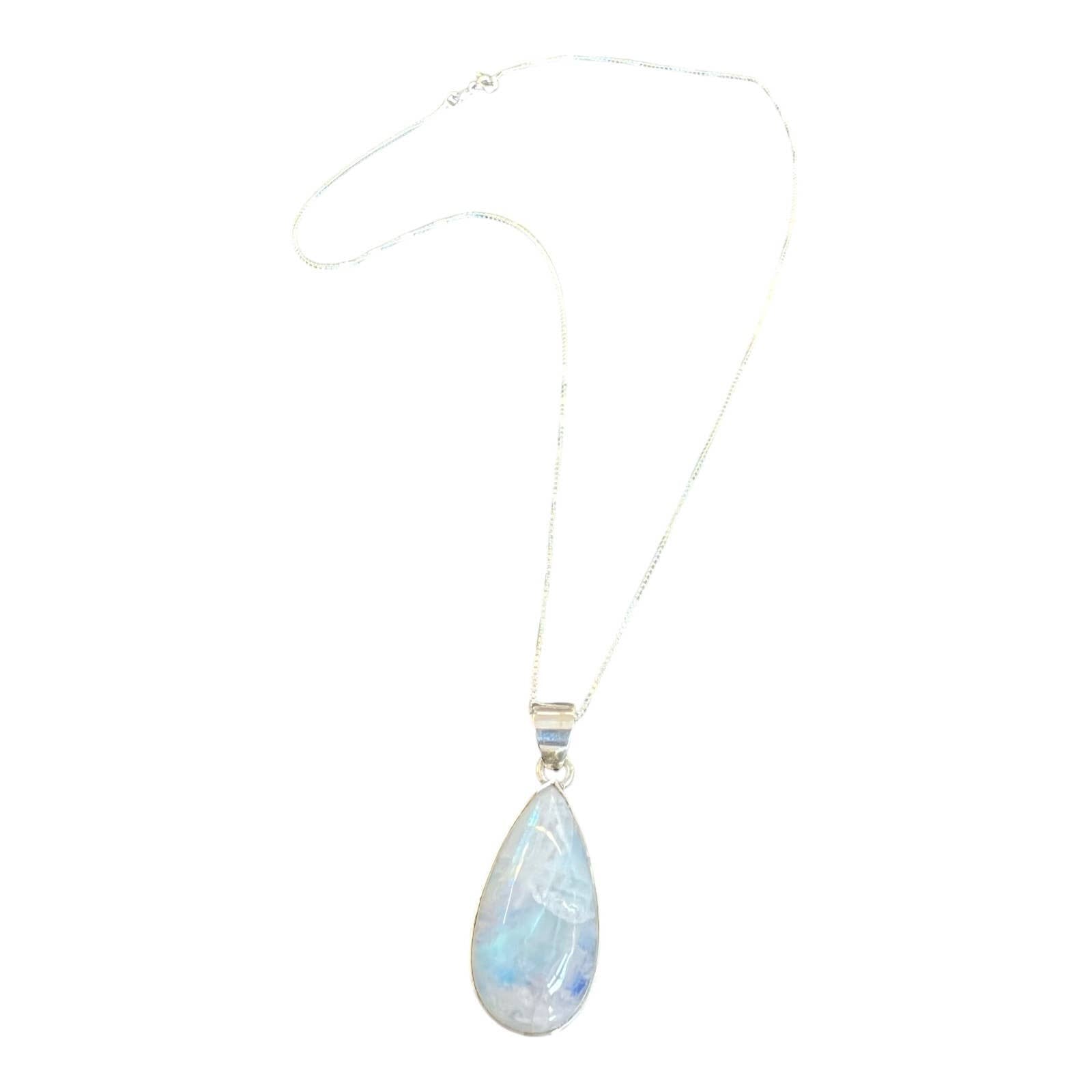 Sterling silver necklace featuring beautiful Moonstone on 18 inch box chain.