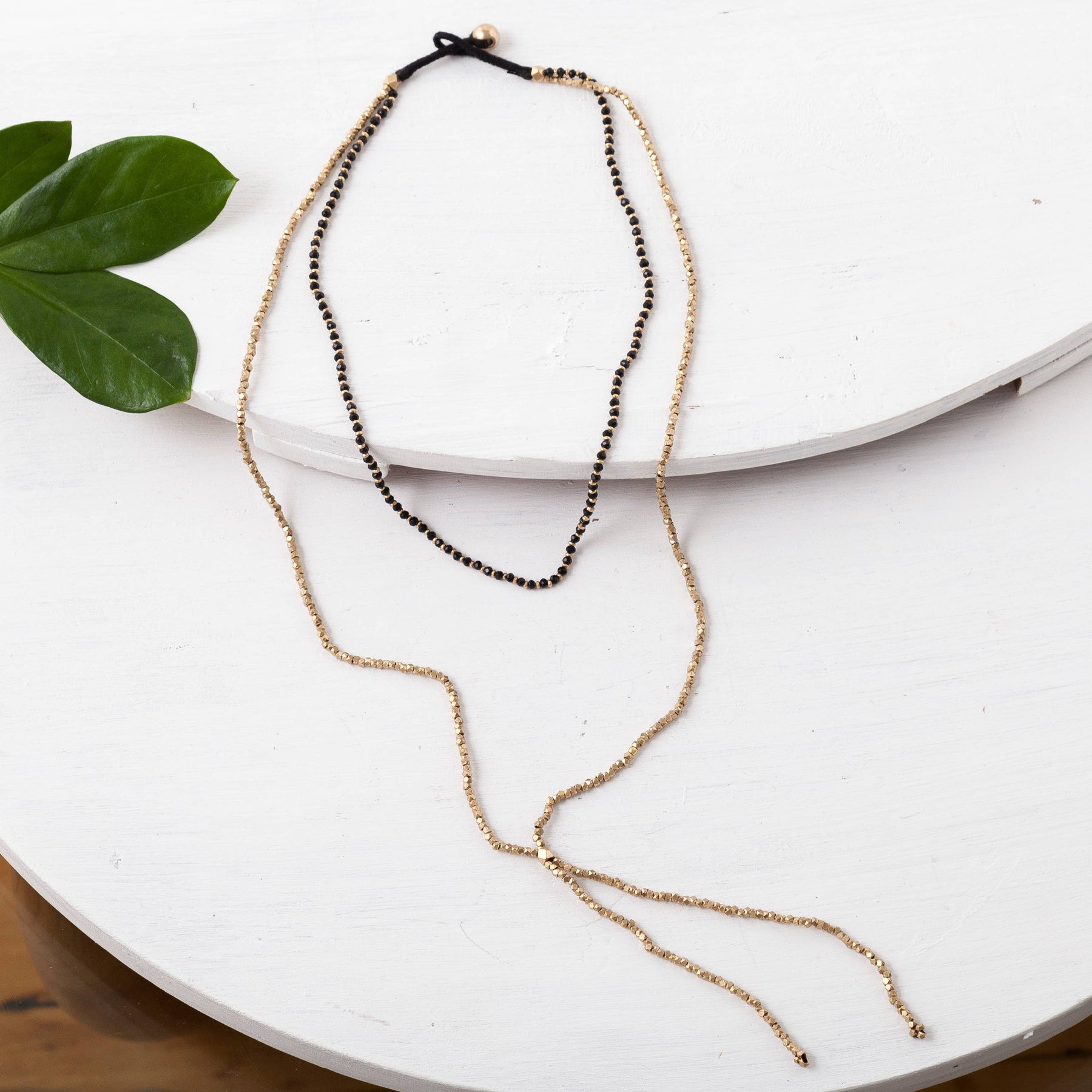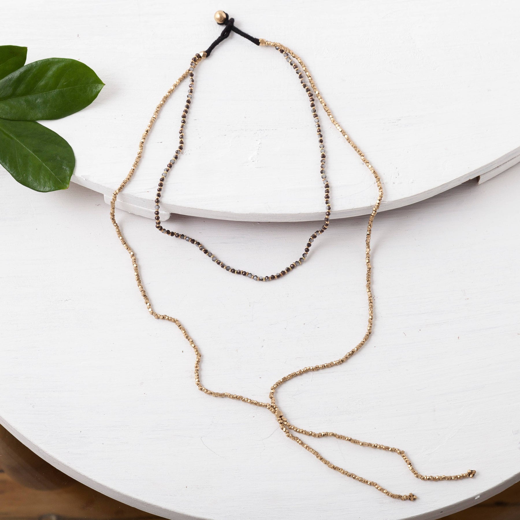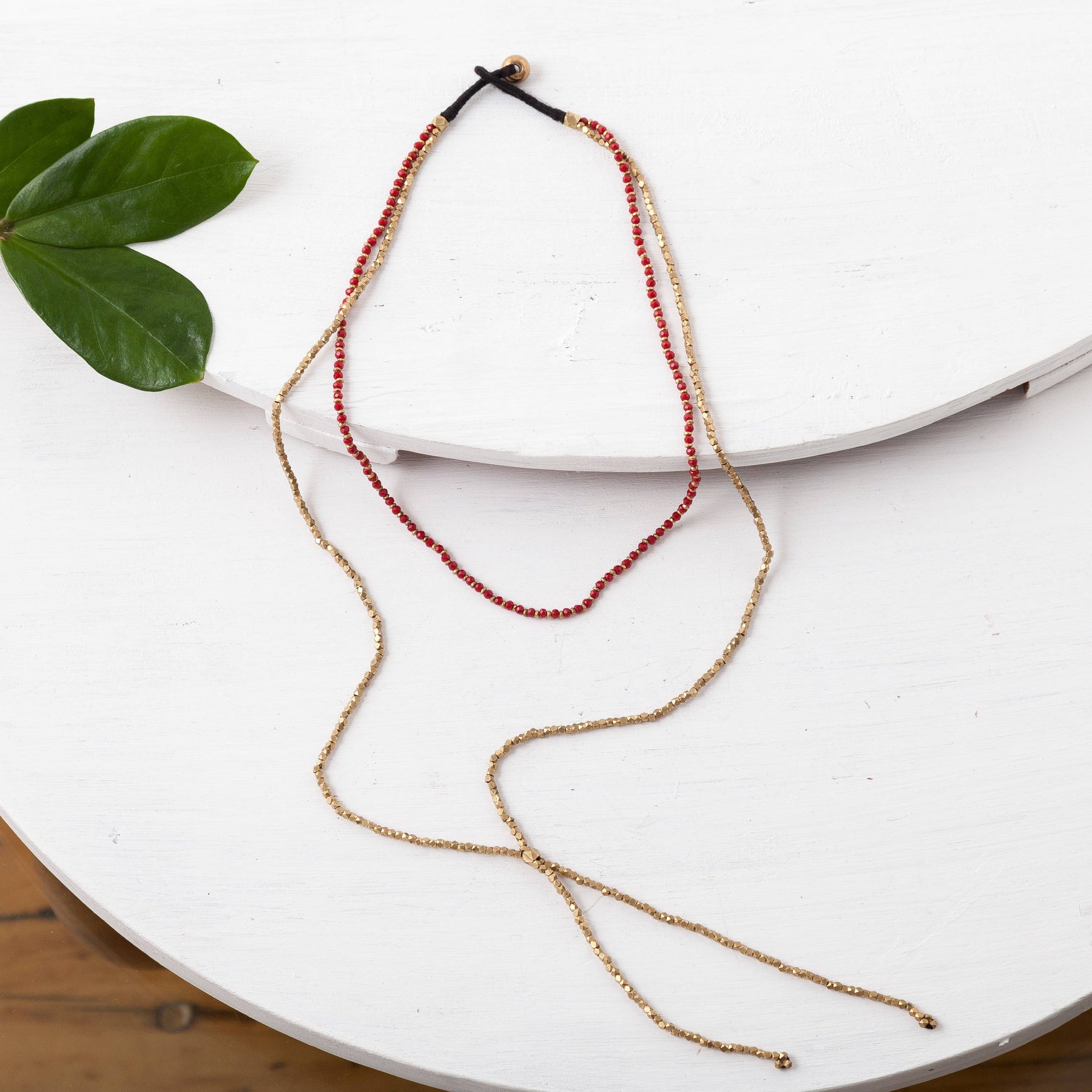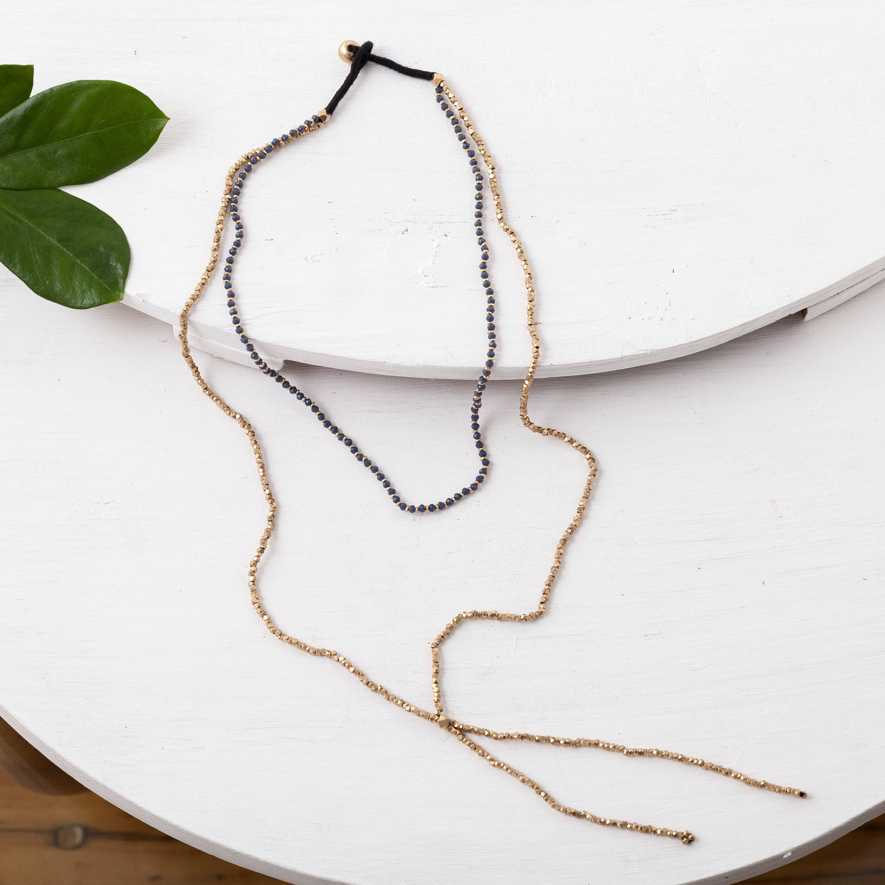 Brass beaded double layer lariat necklace. Available in turquoise, red, grey, blue and black.