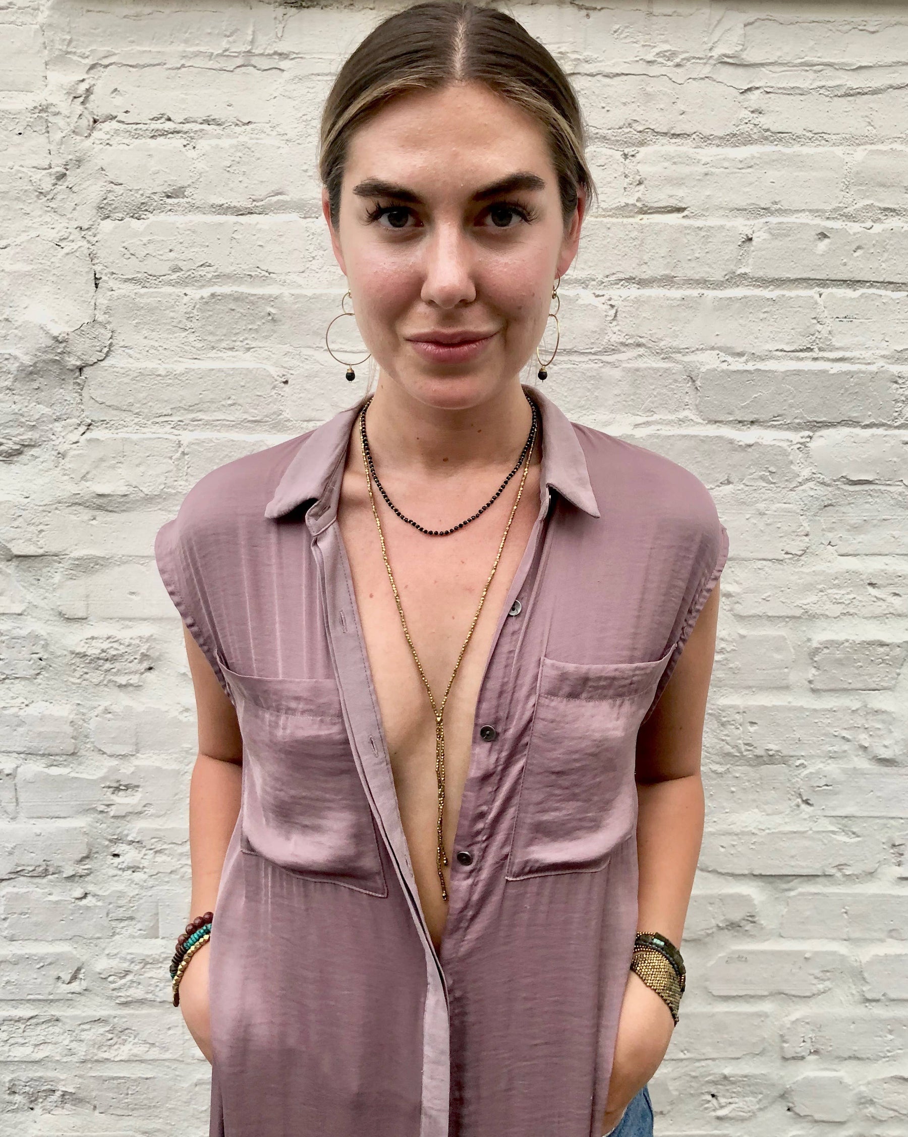 Brass Beaded Short Layering Necklace