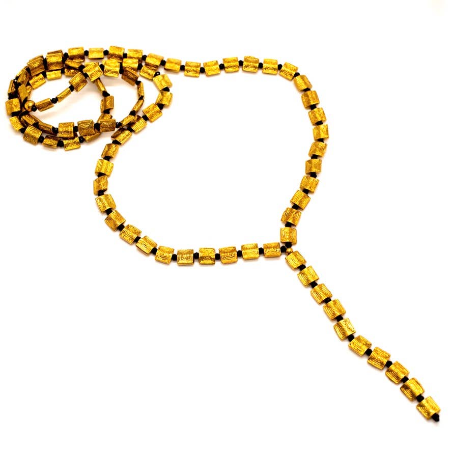 Experience the unique blend of tradition and innovation with Baizaar's Square Lariat Necklace. This beaded piece is not just a necklace, it's a statement. Handmade from brass, it's perfect for Christmas and comes in recyclable packaging, in line with our commitment to ethical sourcing and fair trade practices. Be adventurous, be soulful, and wear Baizaar.