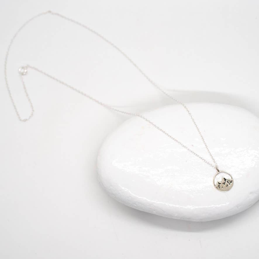 Sterling silver mountain necklace on small link chain. Measures 18 inches.