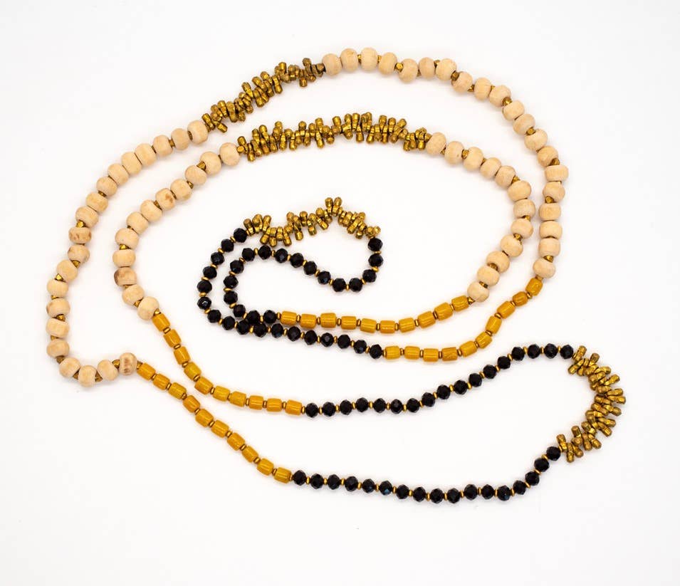 Wood and Brass Beaded Necklace