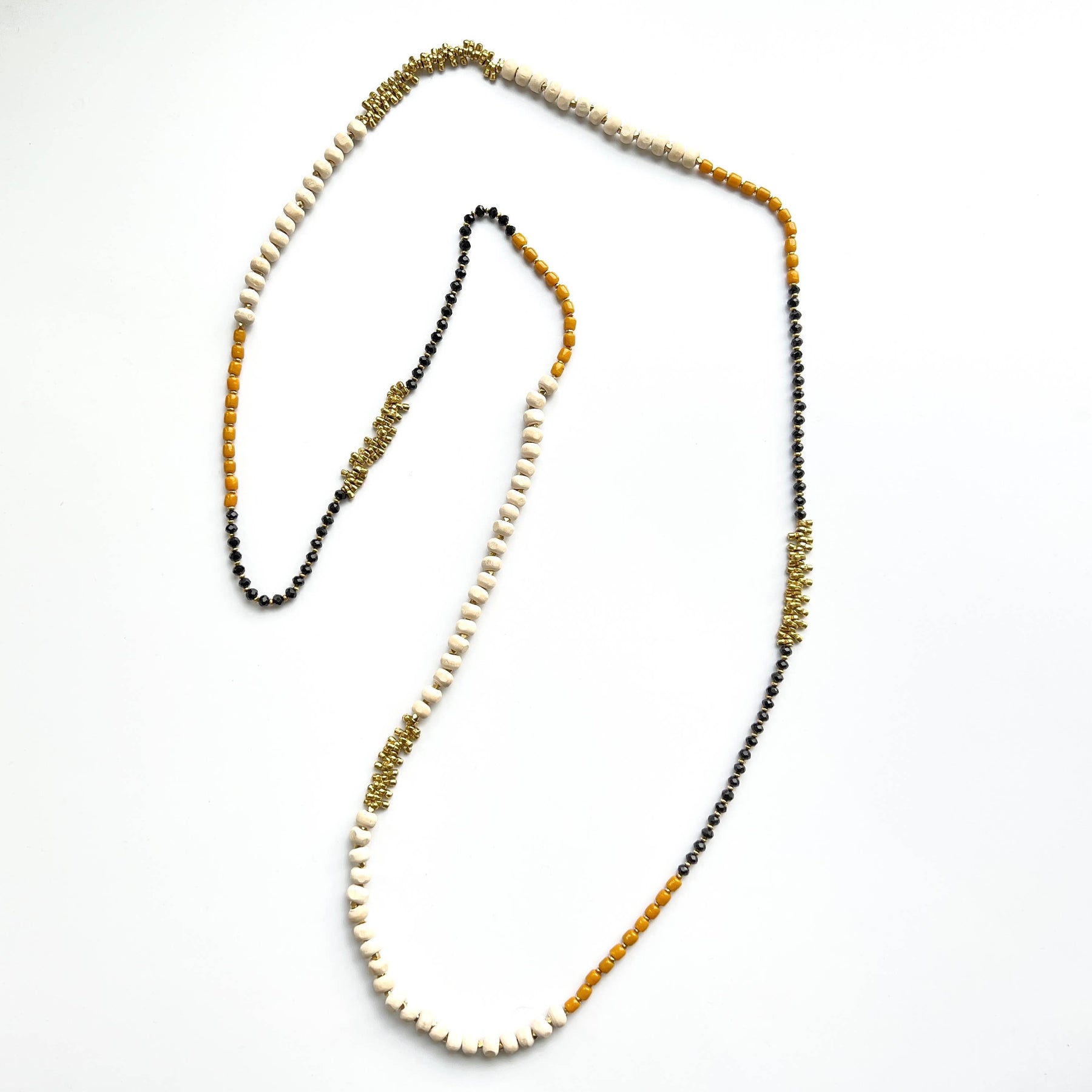 Wood and brass beaded necklace