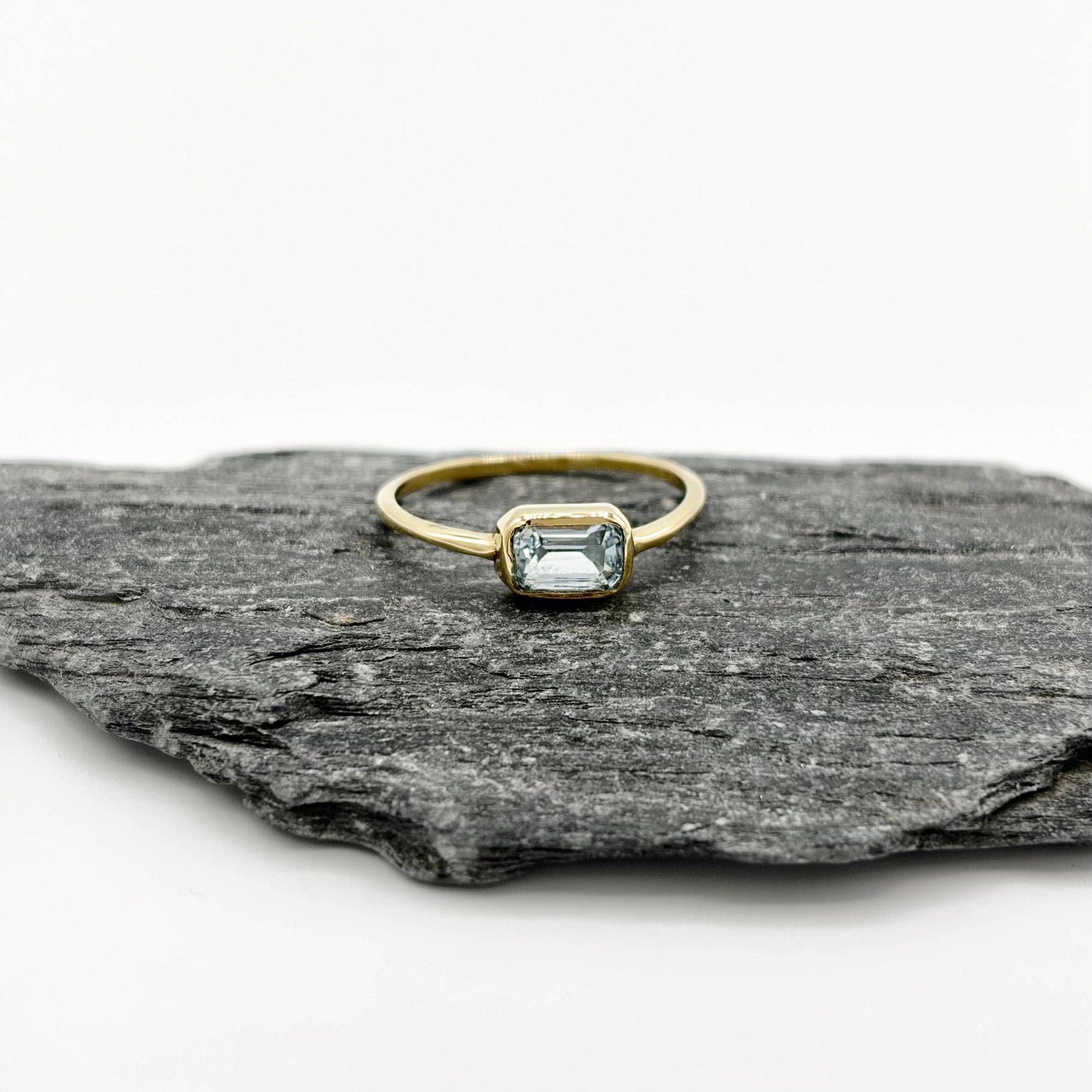 Brass Blue Topaz Solitaire Ring