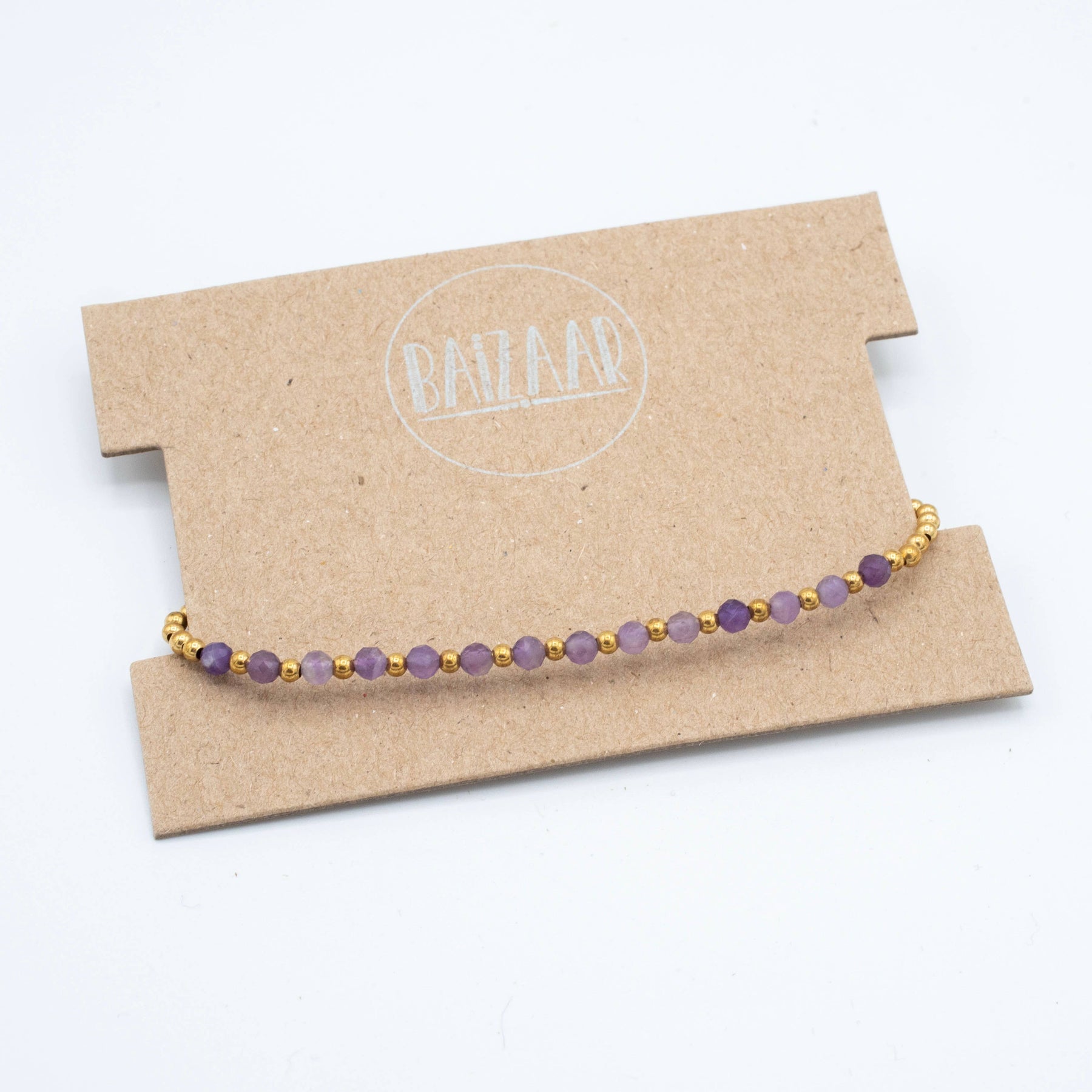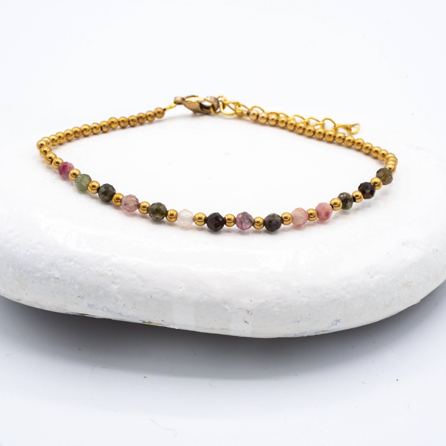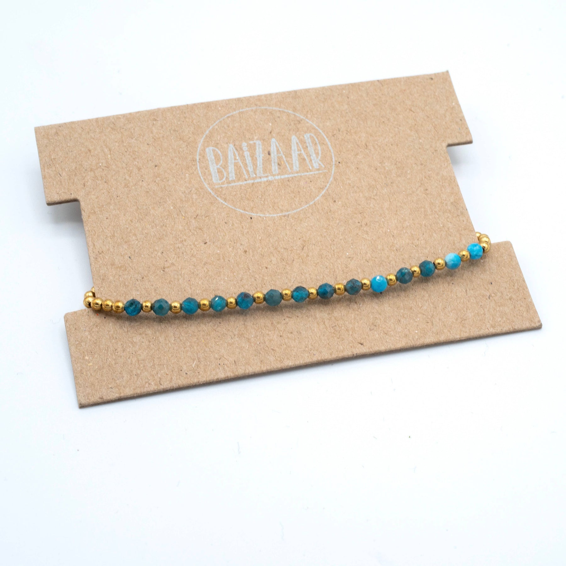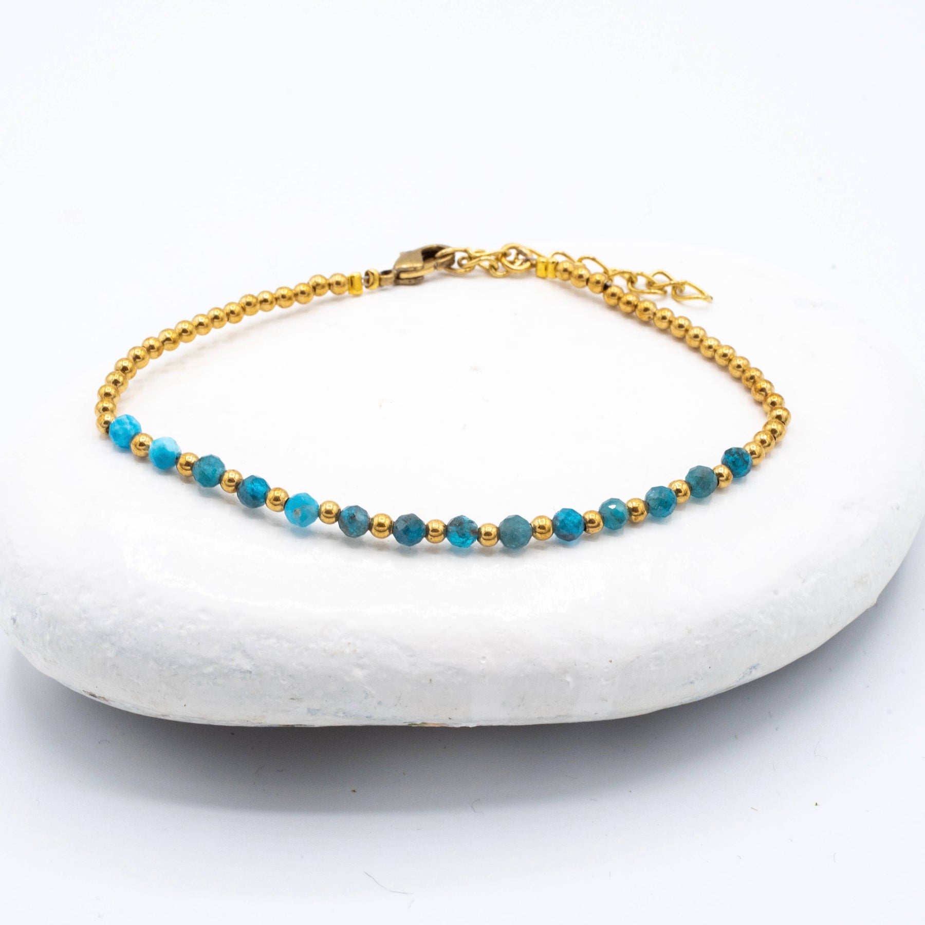 Simple brass & stone beaded bracelet featuring faceted Apatite, African Turquoise, Moonstone, Amethyst, or Tourmaline.