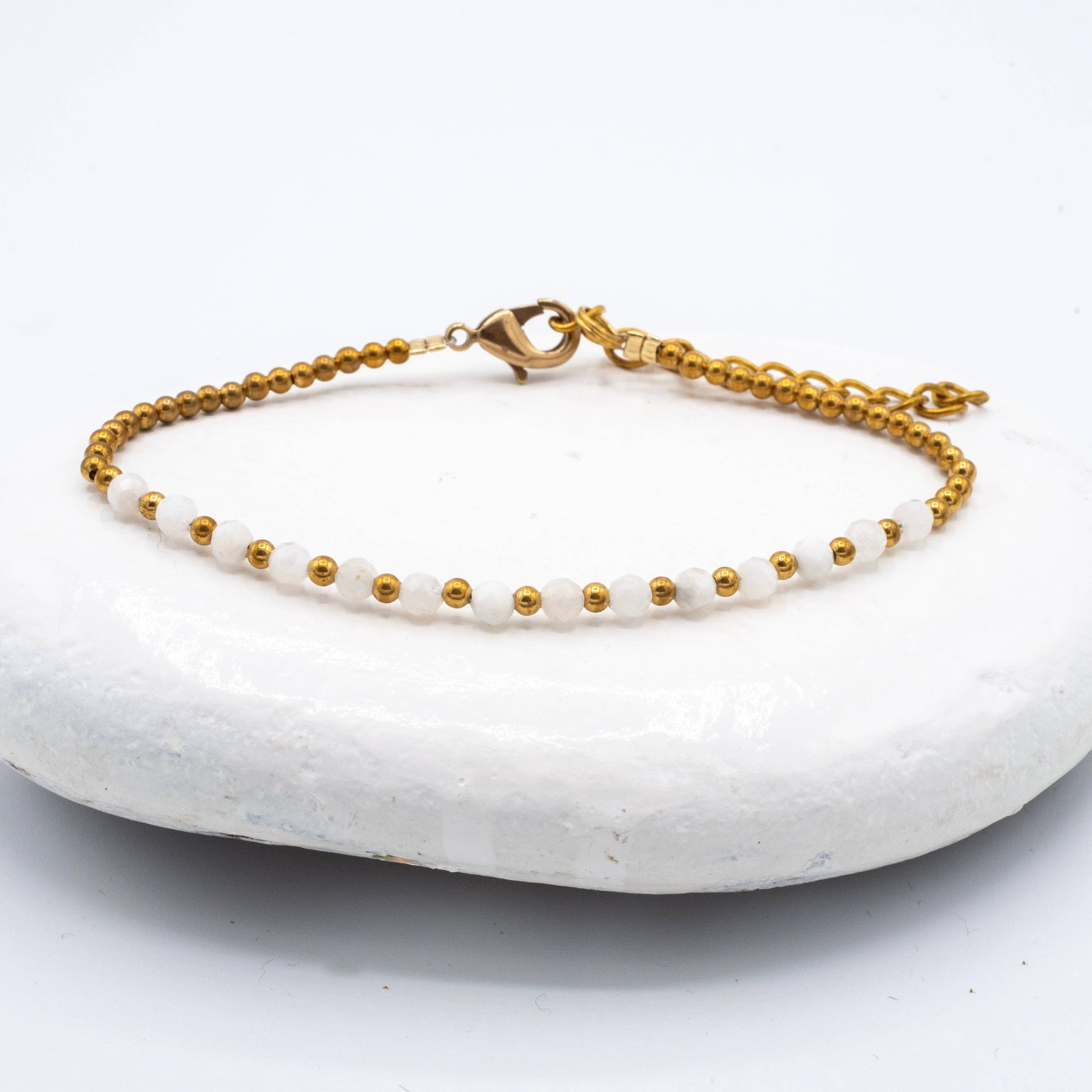 Simple Brass Beaded Stone Bracelet