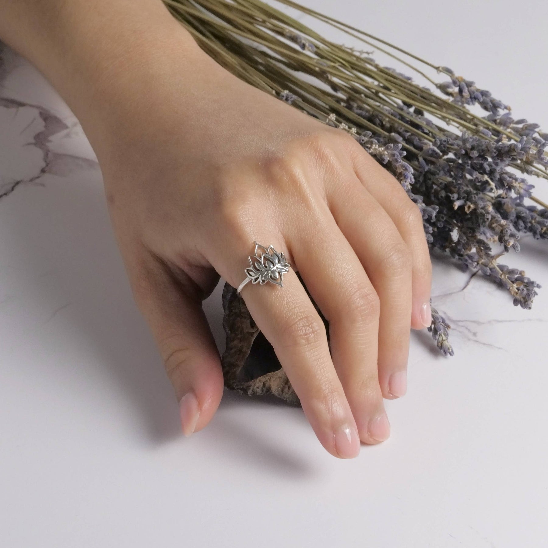 This Sterling Silver Lotus Ring from Baizaar is a beautiful fusion of traditional and innovative design. Handmade by skilled artisans in India and Thailand, this band-stacked ring captures the bohemian spirit, perfect for summer or as a unique Christmas gift. Crafted from sterling silver, this ring is recyclable and sourced ethically under fair trade practices. Baizaar's commitment to empowering artisans is reflected in every piece, making this lotus ring more than just jewelry - it's a symbol of soulful and spirited craftsmanship.