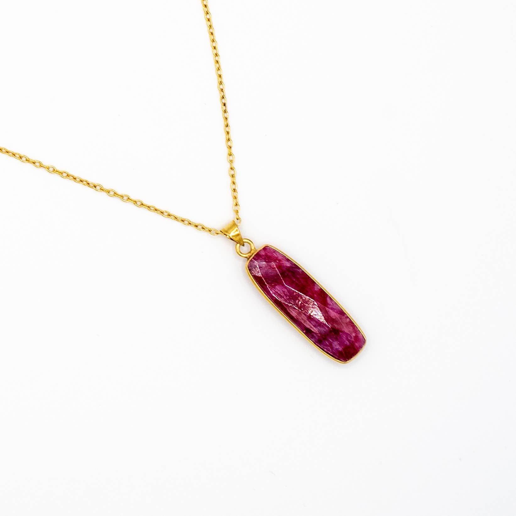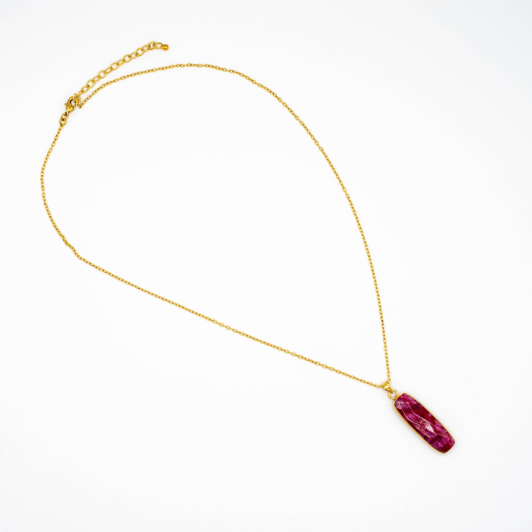 Brass necklace featuring faceted Ruby stone. 18 inch chain with 2 inch extension.
