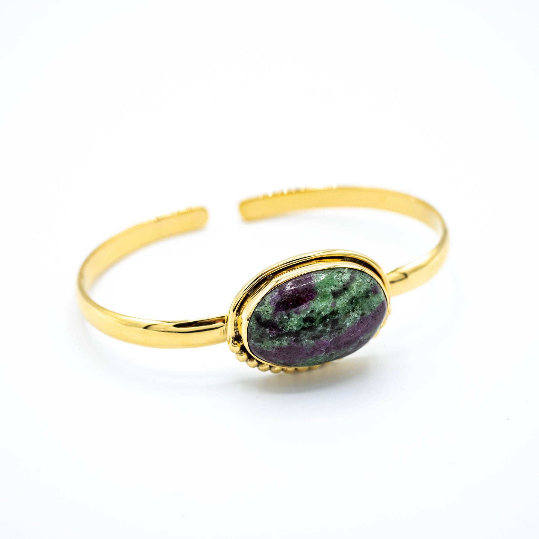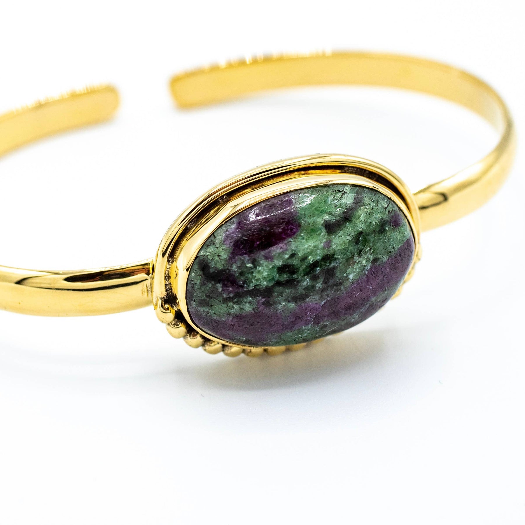 Brass Ruby Zoisite cuff bracelet with spotted detail