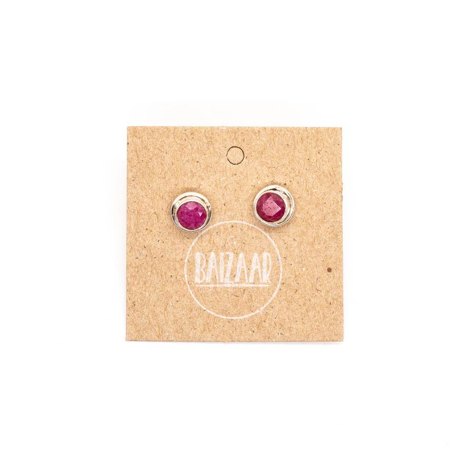 Sterling Silver Stone Stud - Ruby, Moonstone, Labradorite
