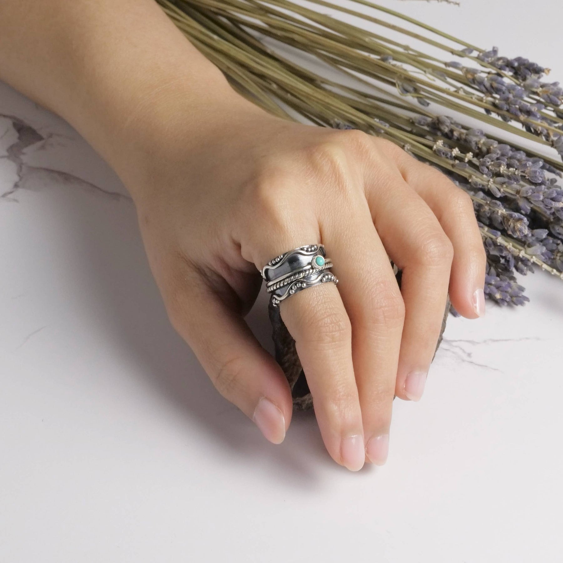 Oxidized Sterling Silver Spinner Ring w/ Turquoise