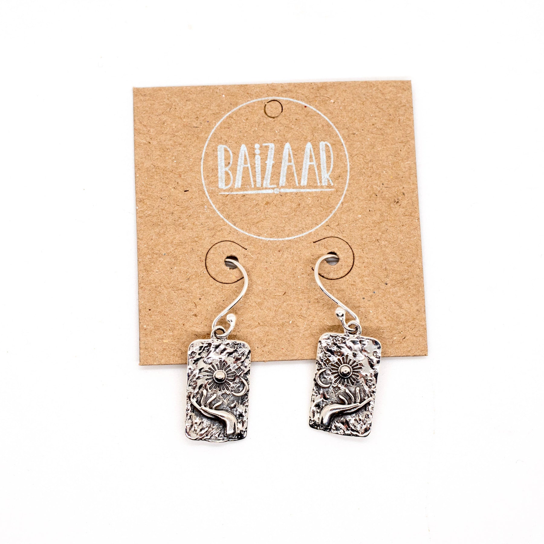 Sterling Silver earring with beautiful sun, moon and hand motif. Measures 0.75" long (plus hook) x .5 wide