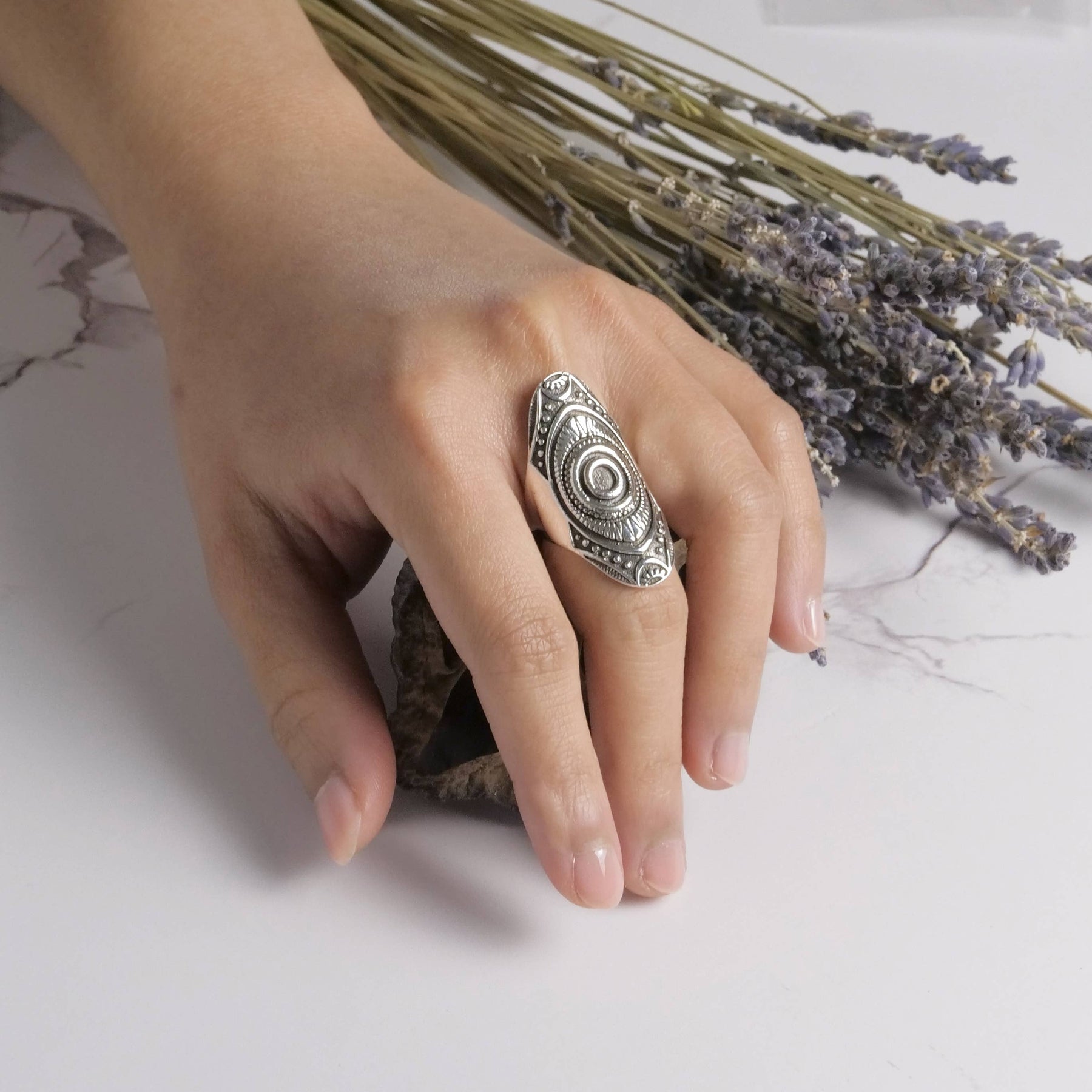 Sterling silver Carved Shield Ring