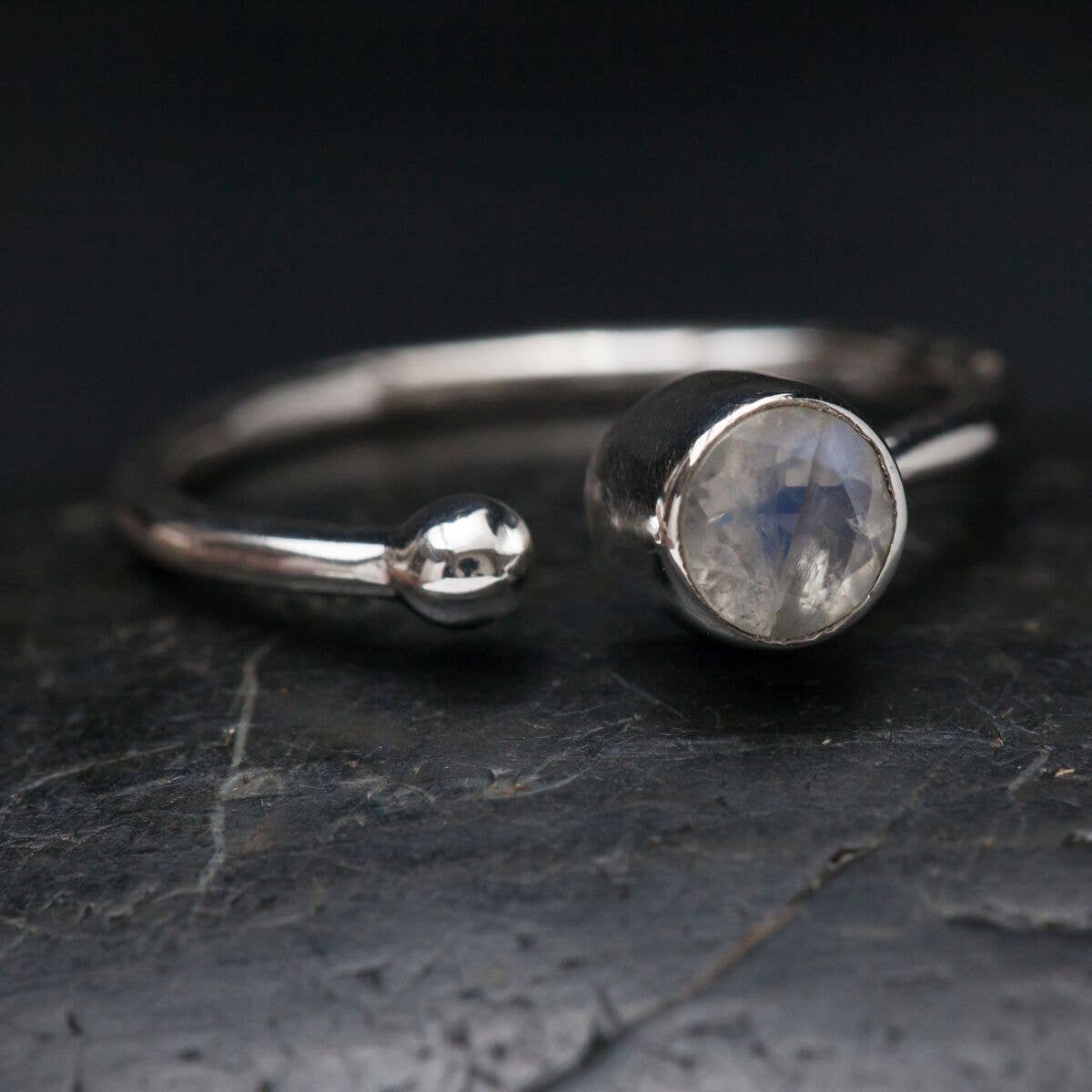Sterling silver stone and ball ring.