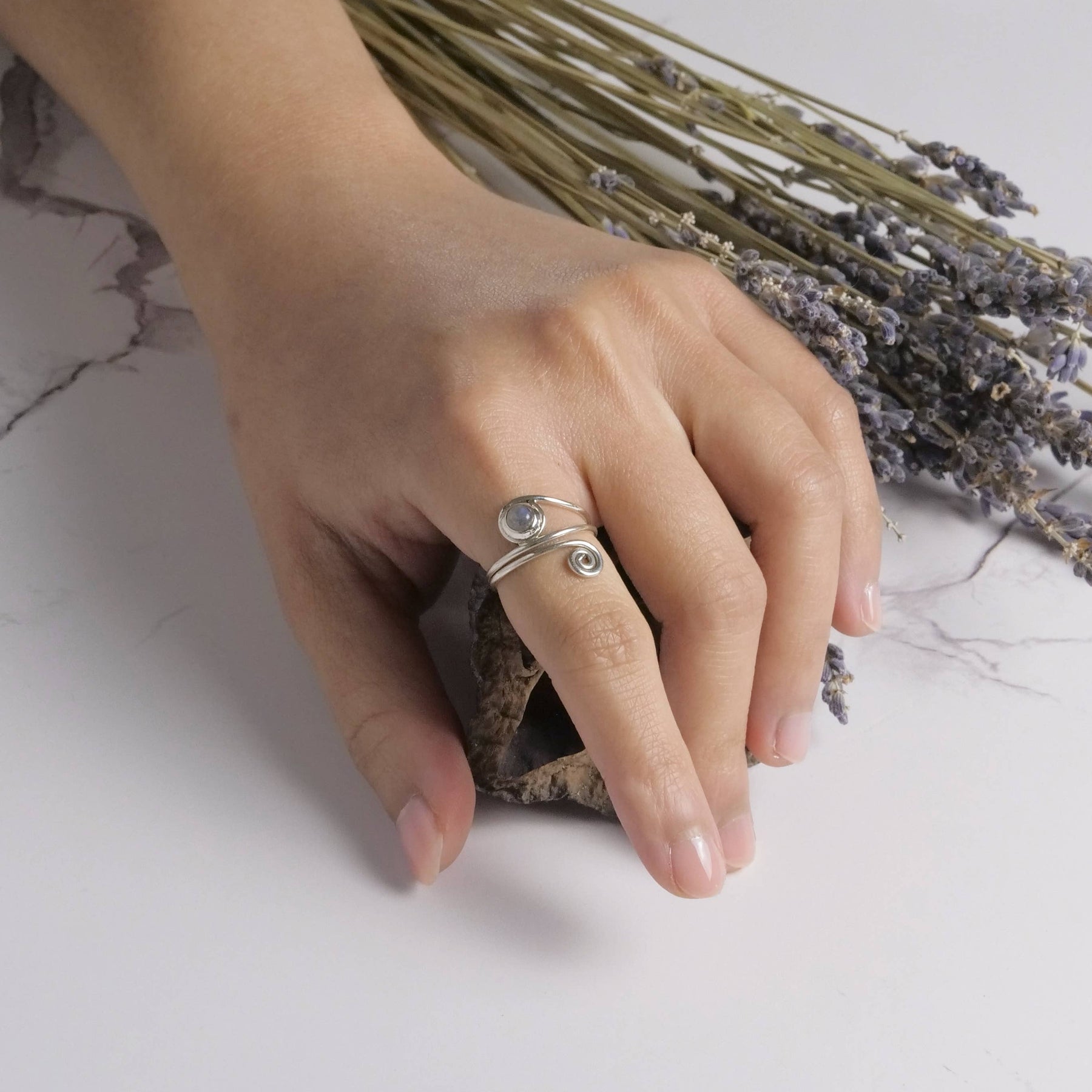 This minimalist Sterling Silver Swirl Stone Ring from Baizaar is a perfect addition to any jewelry collection. With a soulful moonstone as its centerpiece, this ring embodies the spirit of both tradition and innovation. Ethically sourced and handmade by empowered artisans in India and Thailand, this fair-trade piece aligns with the values of the conscious consumer. Suitable for both spring festivities and Christmas celebrations, it's also recyclable.